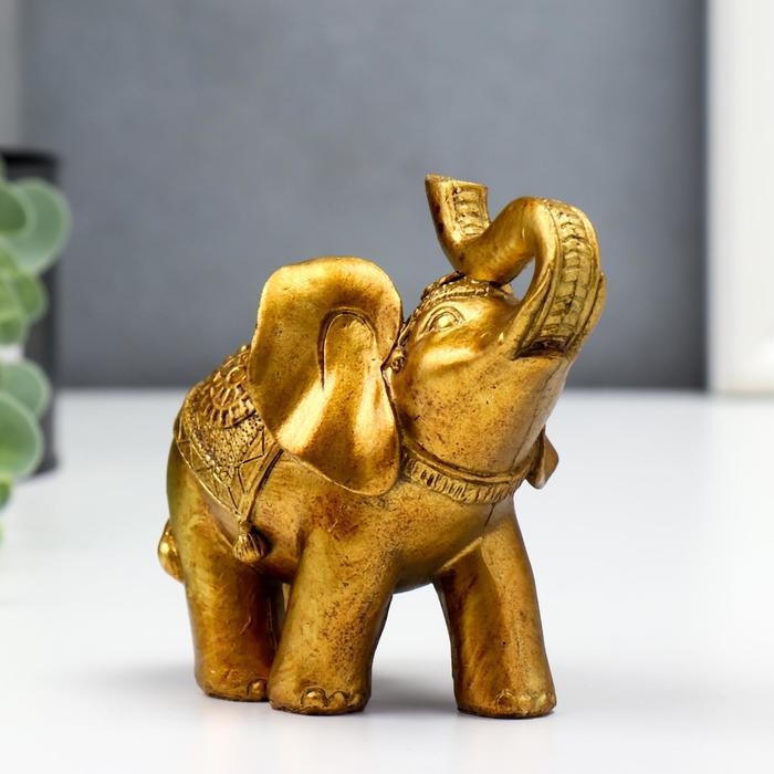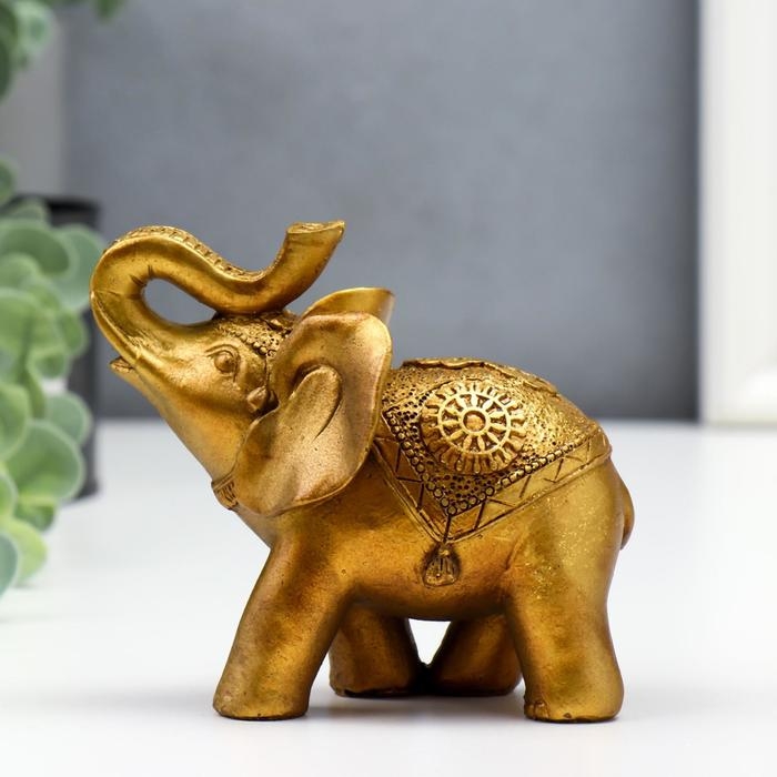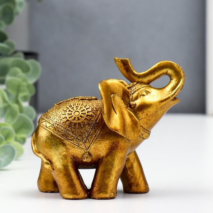 Сувенир полистоун "Слон в золотой попоне с узорами" лак 10х5х12 см