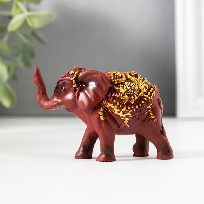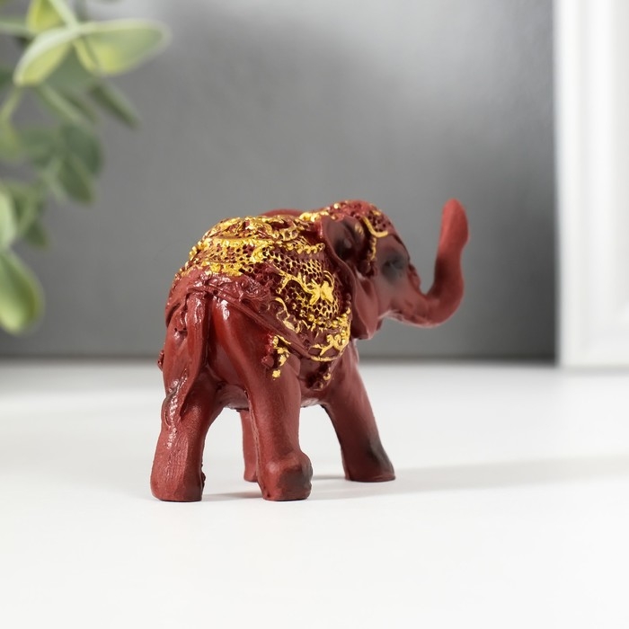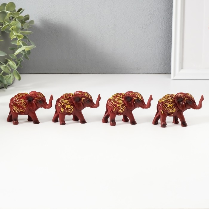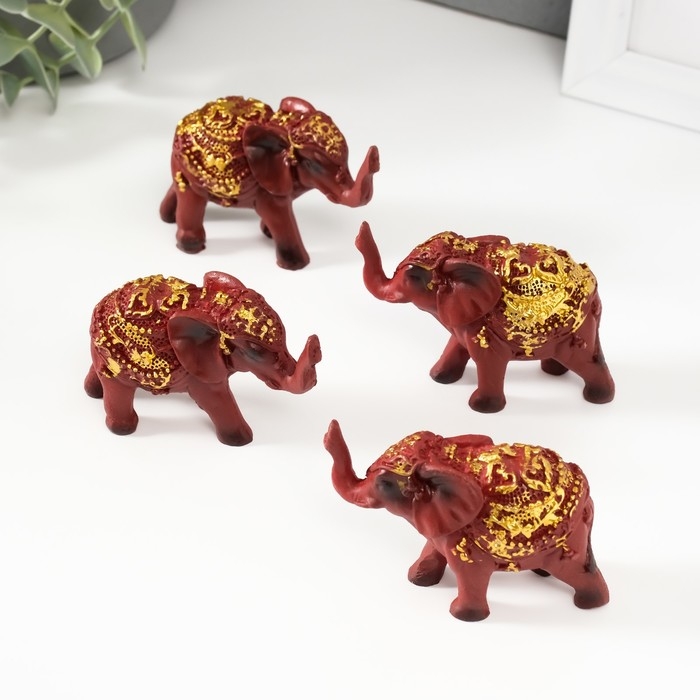 Сувенир полистоун "Слонёнок в золотой попоне с красным камнем" набор 4 шт 7,5x3x5 см