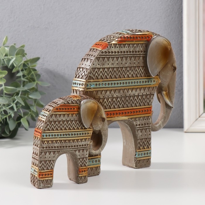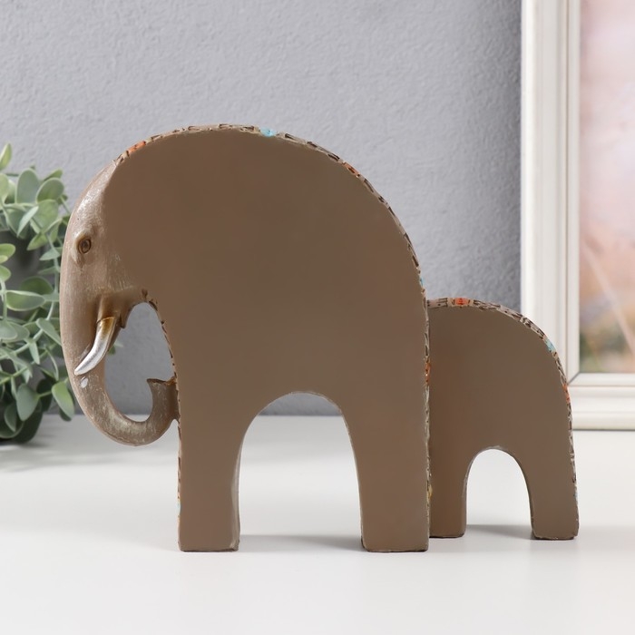 Сувенир полистоун "Слониха и слонёнок. Африканские узоры" мокко 24х6х18 см