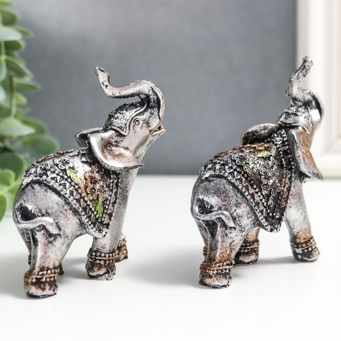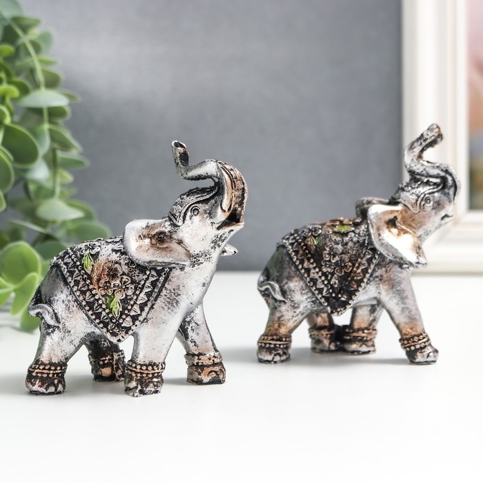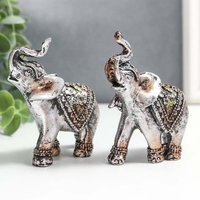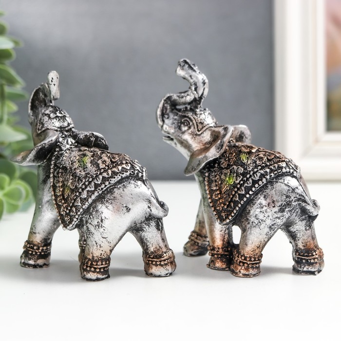 Сувенир полистоун "Слоники в треугольных попонах" набор 2 шт 8х3х7,5 см
