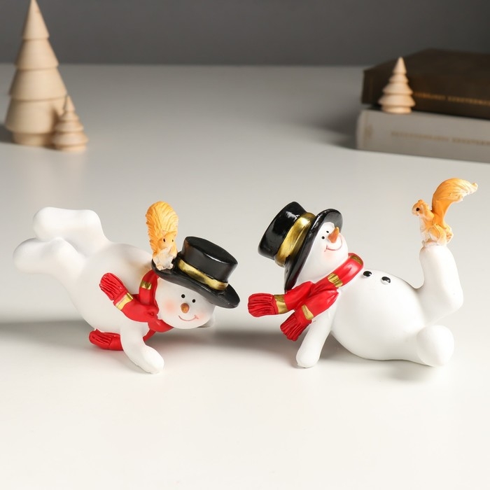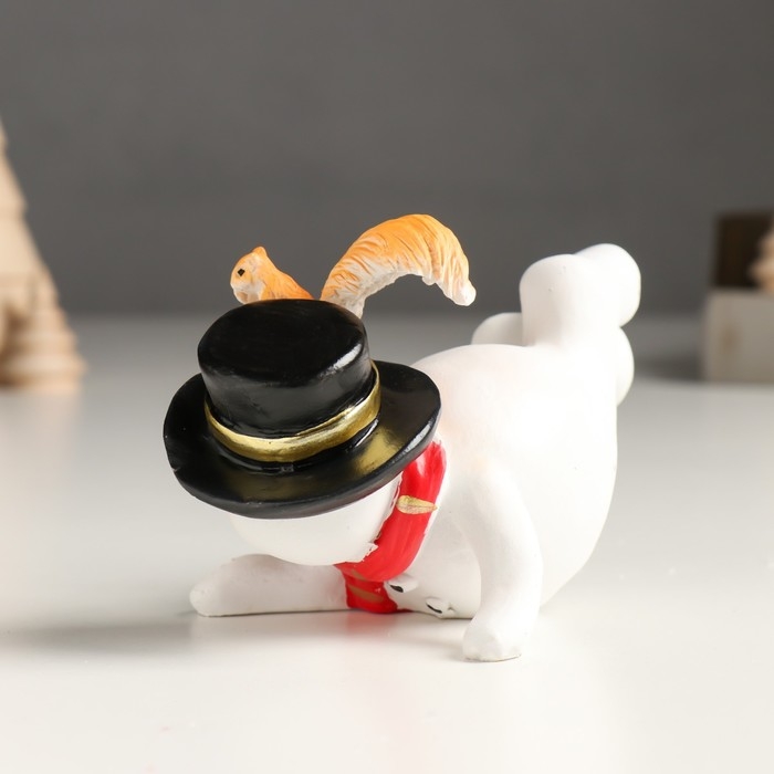 Сувенир полистоун "Снеговичок в цилиндре и шарфе, с белочкой" МИКС 12х8х см