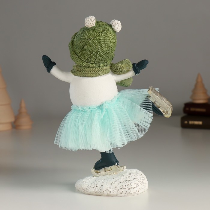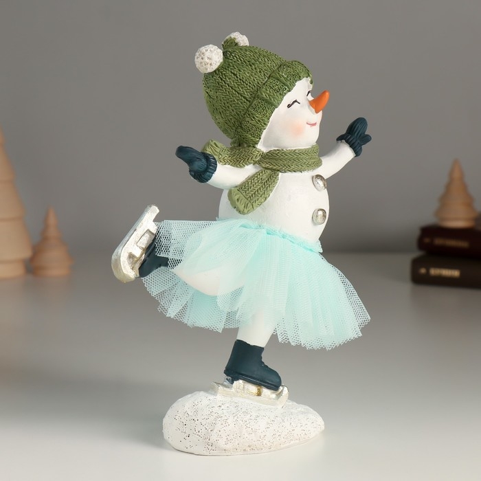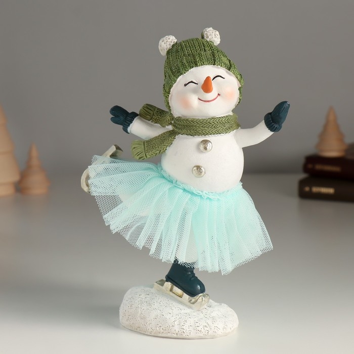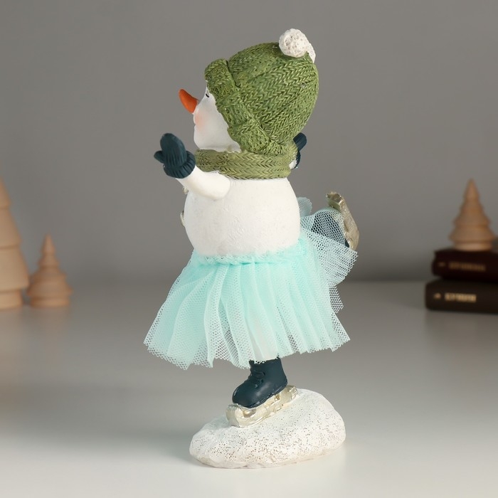 Сувенир полистоун "Снеговичок в голубой юбке" 14х7х17,5 см