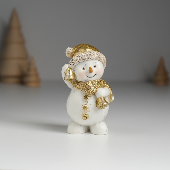 Сувенир полистоун "Снеговичок в колпаке и шарфике с розовыми щёчками" МИКС 5,6х4,5х7,5 см