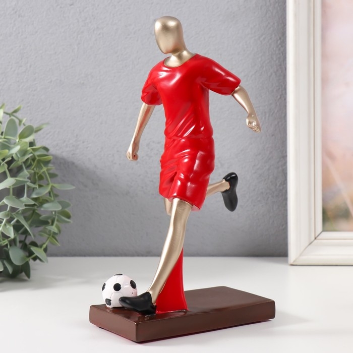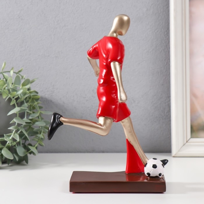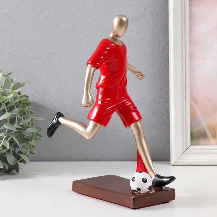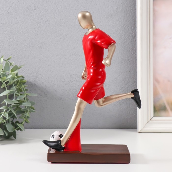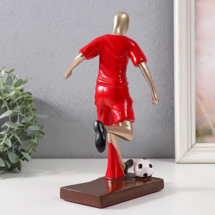 Сувенир полистоун "Спортсмен - футболист" красный с золотом 16,8х24,3 см