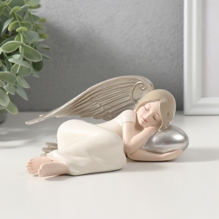 Сувенир полистоун "Спящий ангелочек с серебряными крыльями" 14х10х7 см