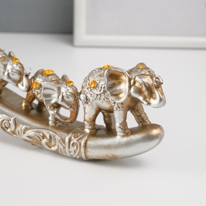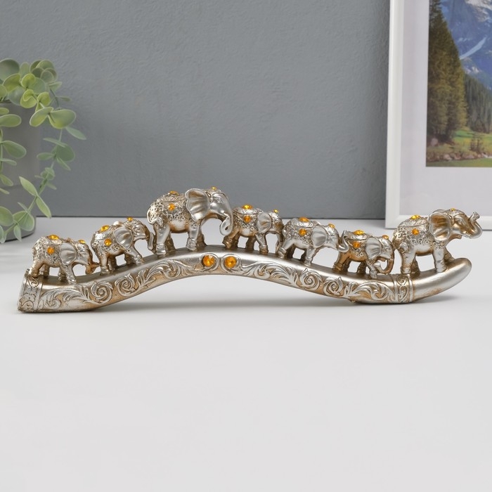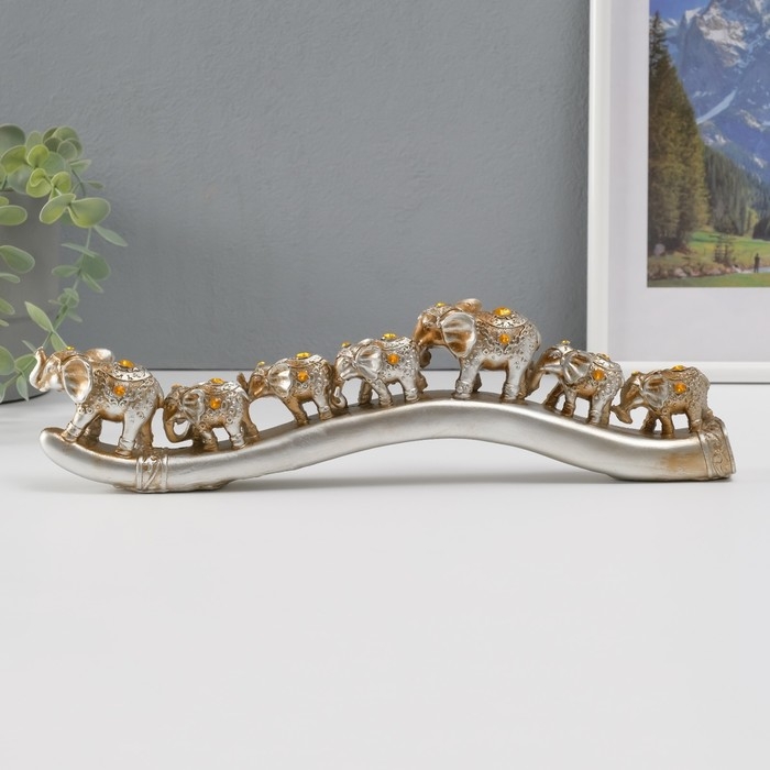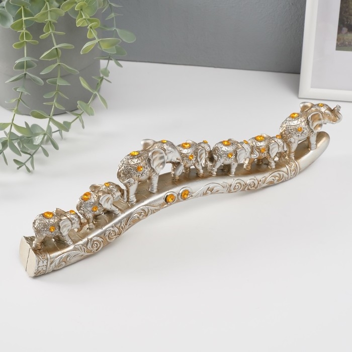 Сувенир полистоун стразы "Караван из семи слонов" 9х32,5х3,5 см