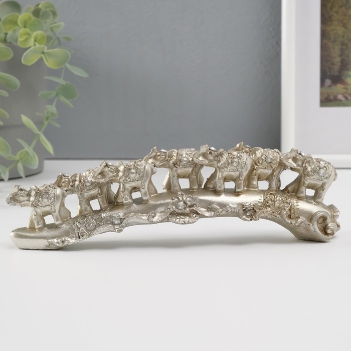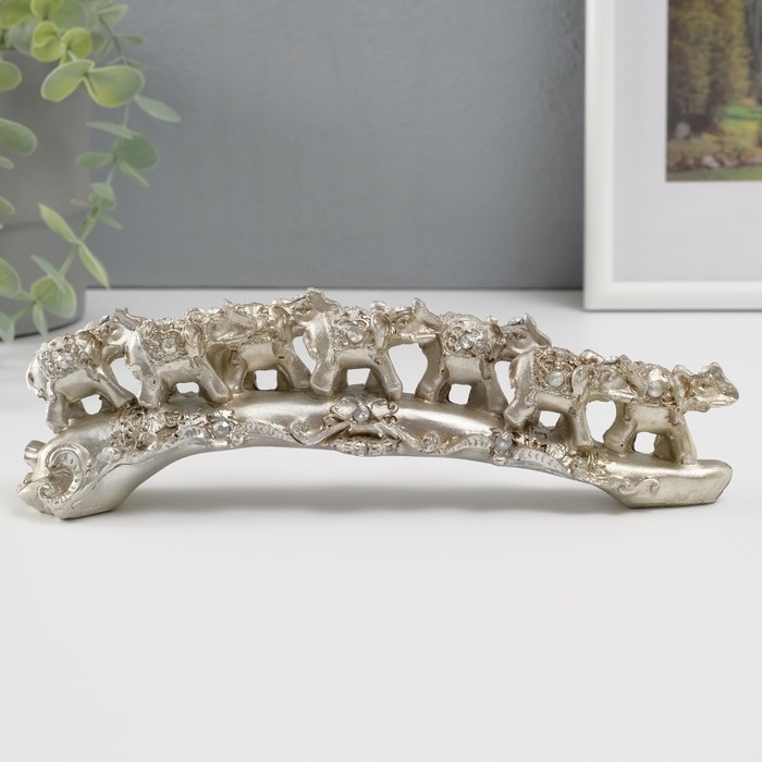 Сувенир полистоун стразы "Семь слонов на бивне" 6,5х22х4,5 см
