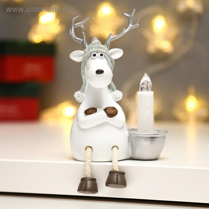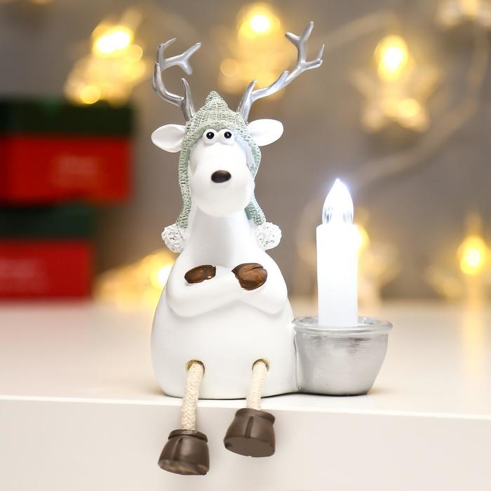 Сувенир полистоун свет "Белый олешка в вязаной шапке со свечкой" МИКС 11,5х8х10,5 см