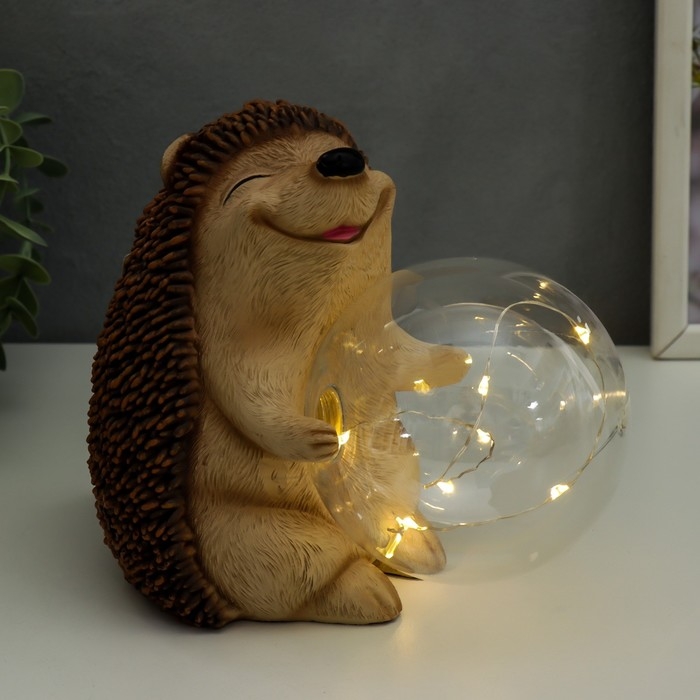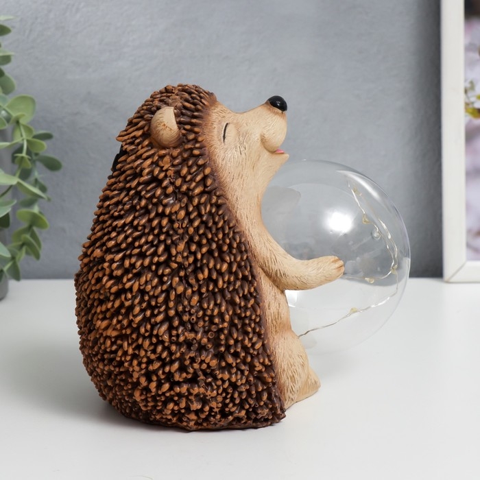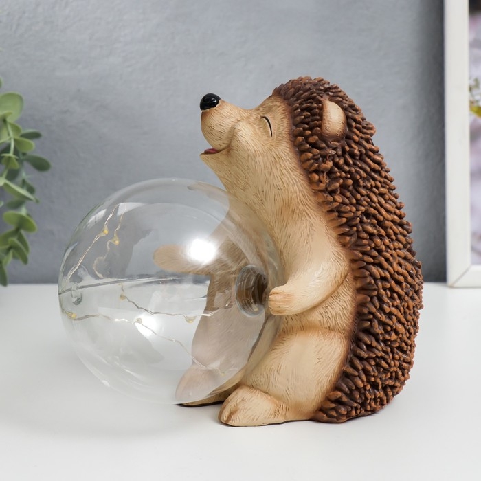 Сувенир полистоун свет "Ёжик и мыльный пузырь" от солнечной батареи 15,5х12х17 см