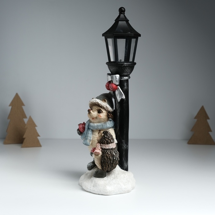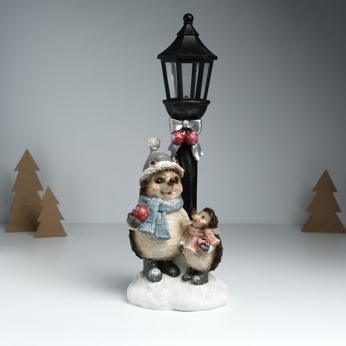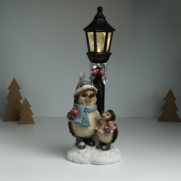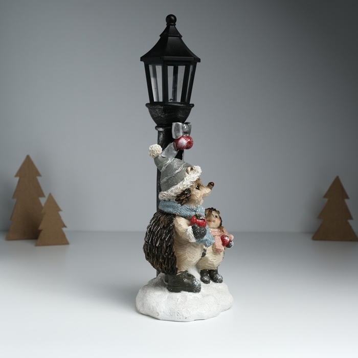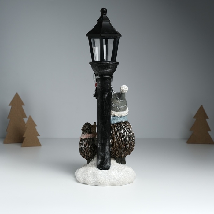 Сувенир полистоун свет "Ёжики в зимних нарядах у фонарного столба" 12,5х10,5х31,5 см