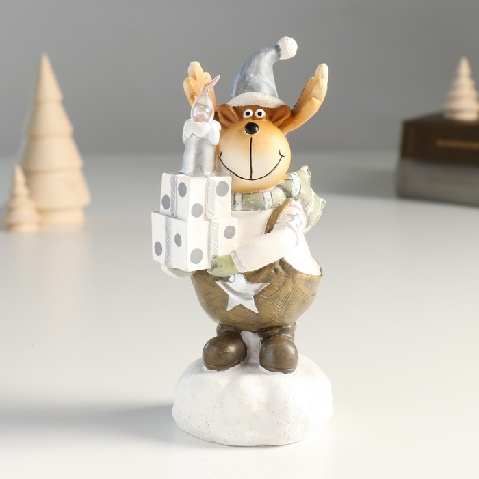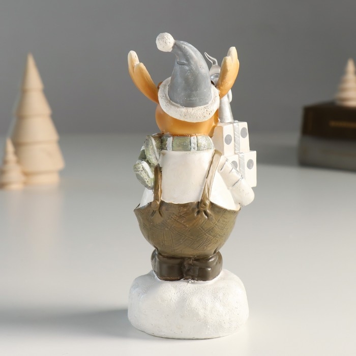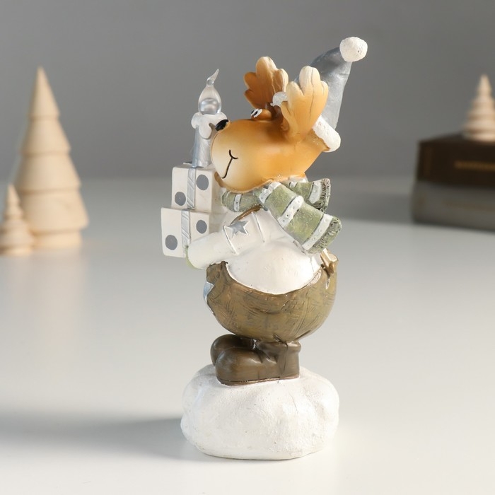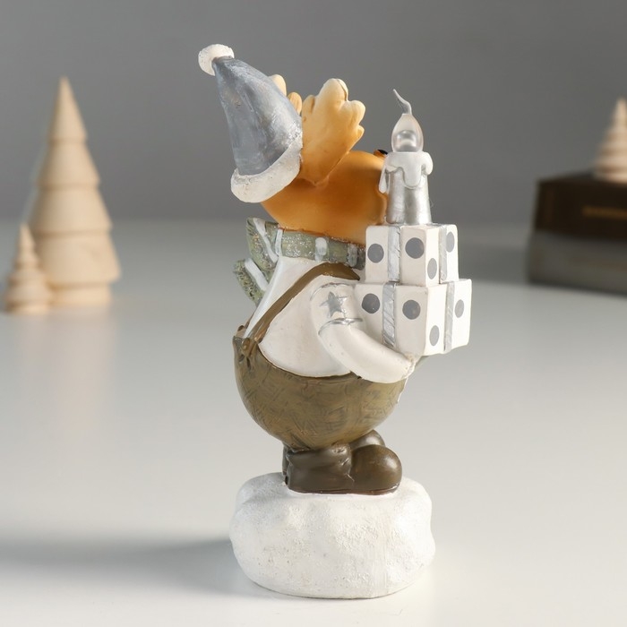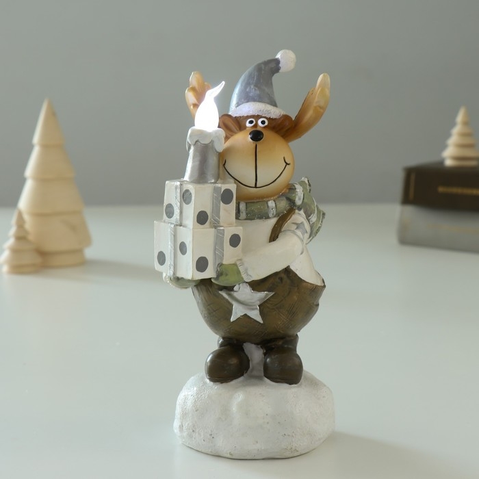 Сувенир полистоун свет "Лосик в колпаке с подарками и свечой" 7,5х6,5х16 см