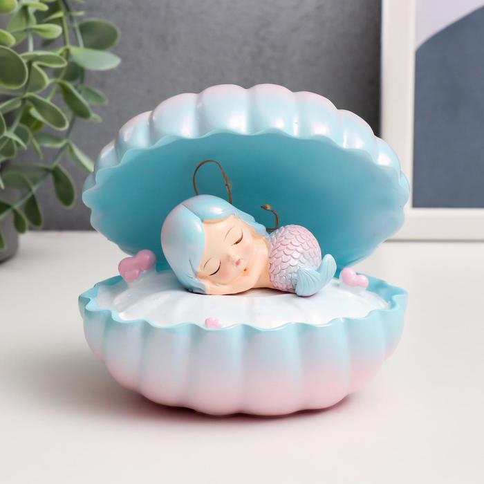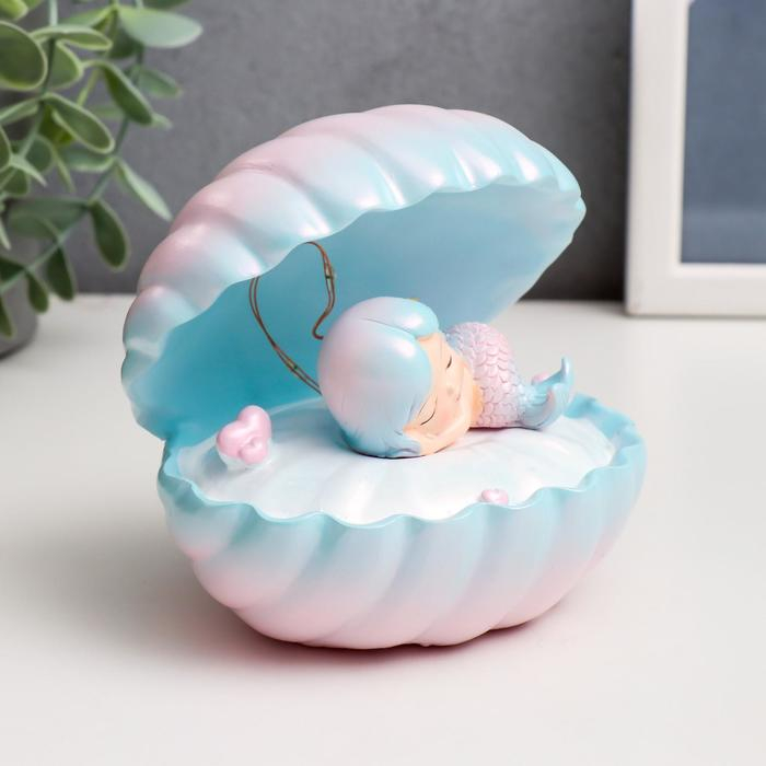 Сувенир полистоун свет "Спящая русалочка в ракушке" голубо-розовый 13х12х10 см