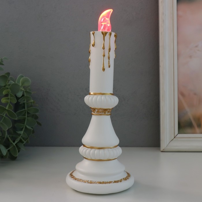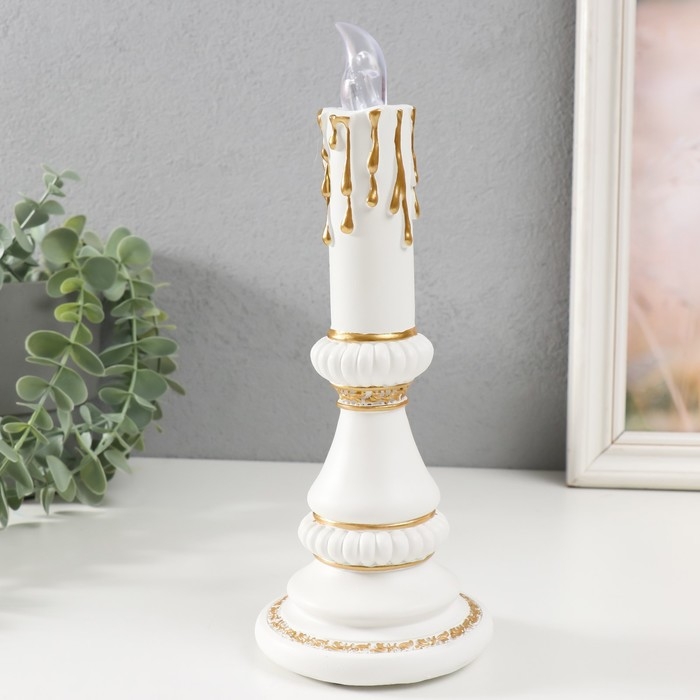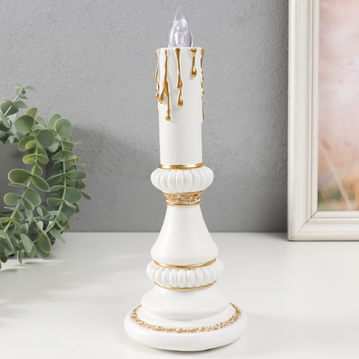 Сувенир полистоун свет "Свеча" 2хLR44 белый с золотом 10х10х24,5 см