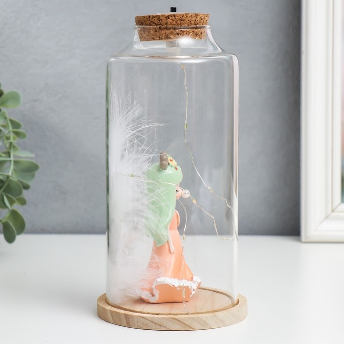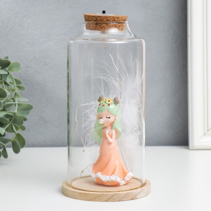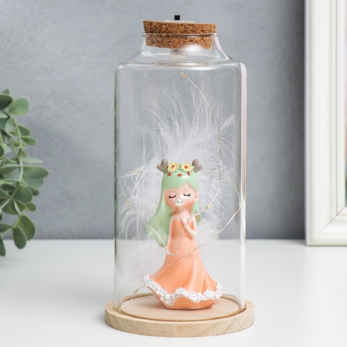 Сувенир полистоун световой "Девочка с зелёными волосами, рожками и пером" 10х10х20,5 см