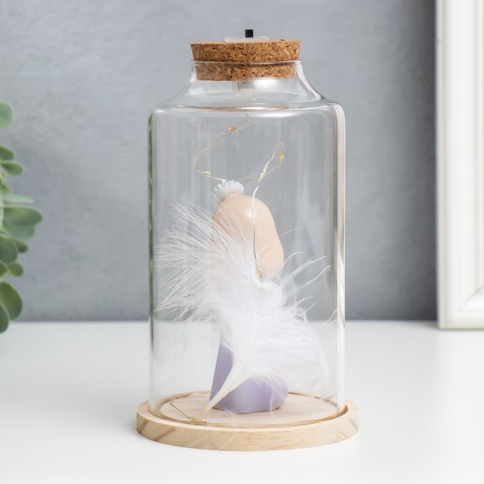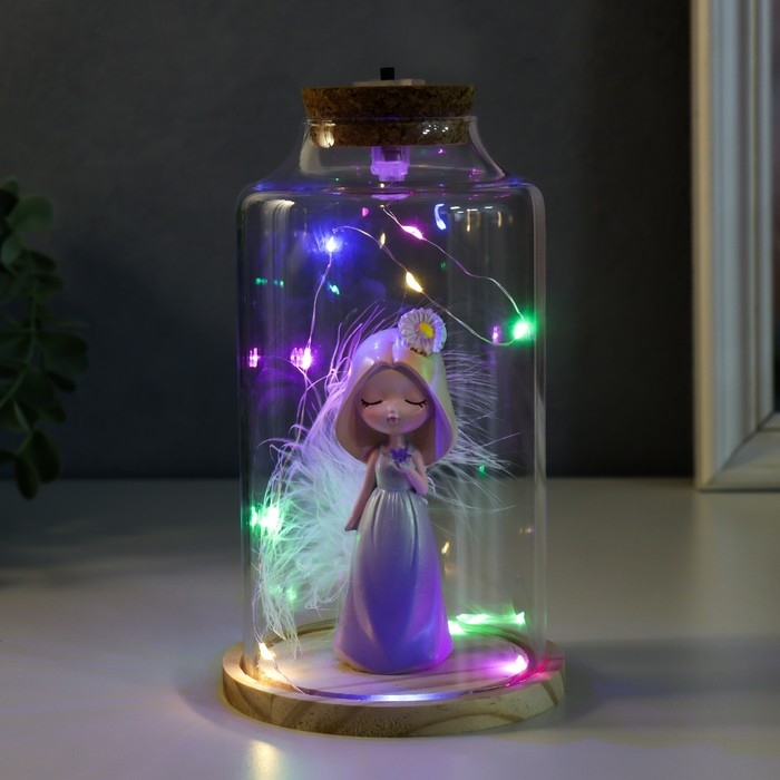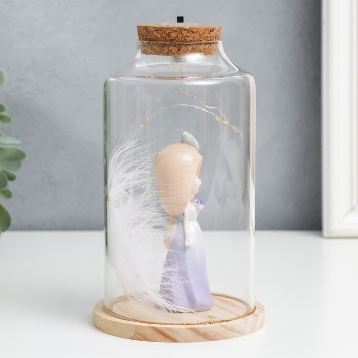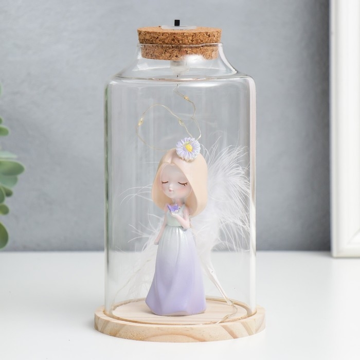 Сувенир полистоун световой "Девочка в капюшоне с цветком и пером" 10х10х17,5 см