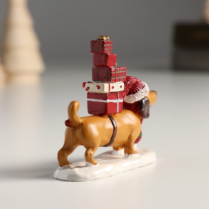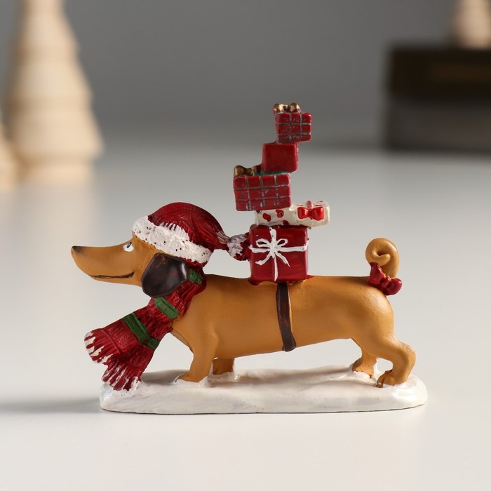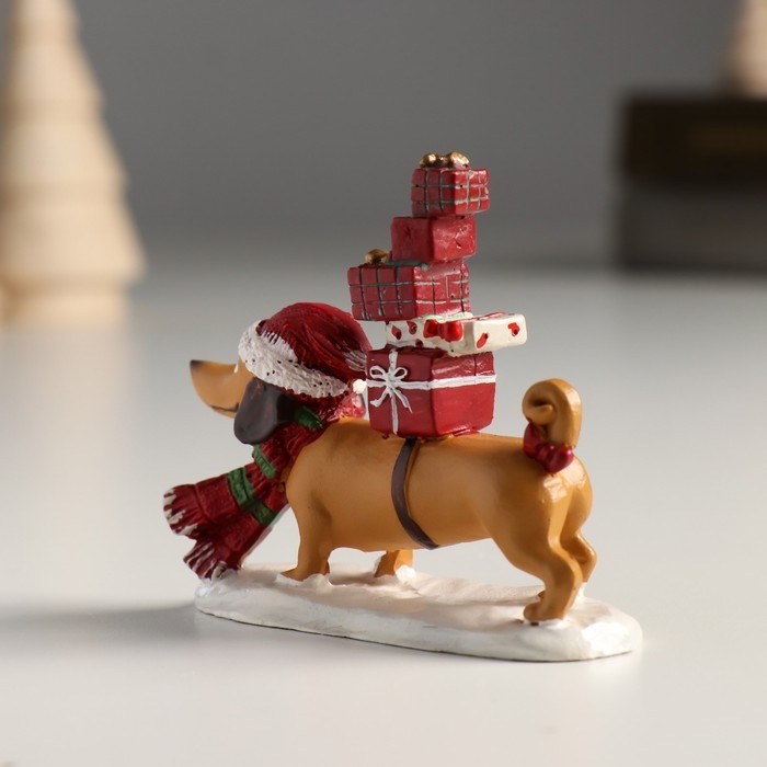 Сувенир полистоун "Такса в шапке несёт подарки" 8х2,5х6,5 см