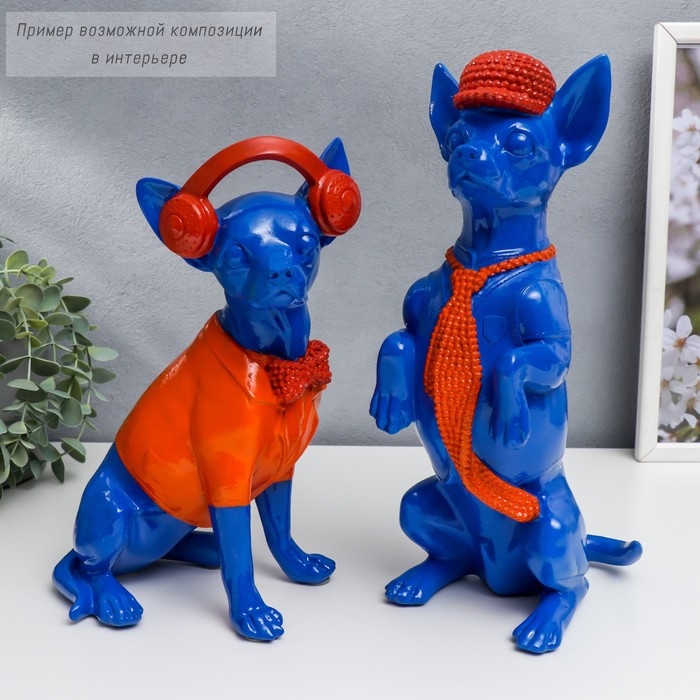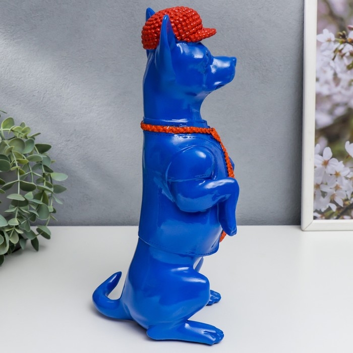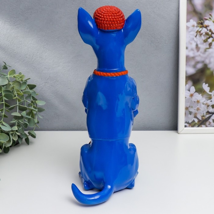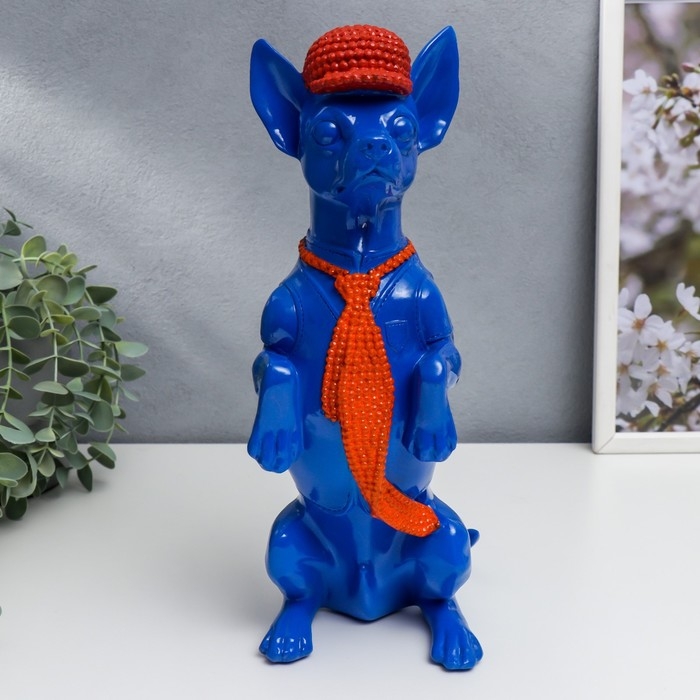 Сувенир полистоун "Той-терьер в кепке и галстуке" синий с оранжевым 29,5х14х11,5 см