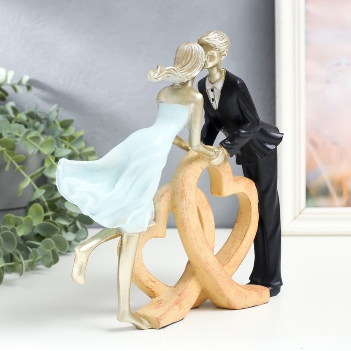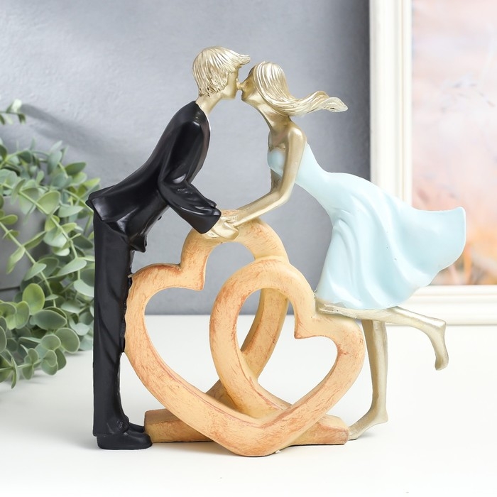 Сувенир полистоун "Влюблённые - поцелуй у сердец" 23х5,5х24 см