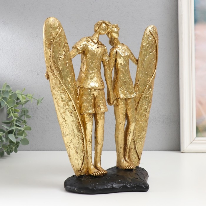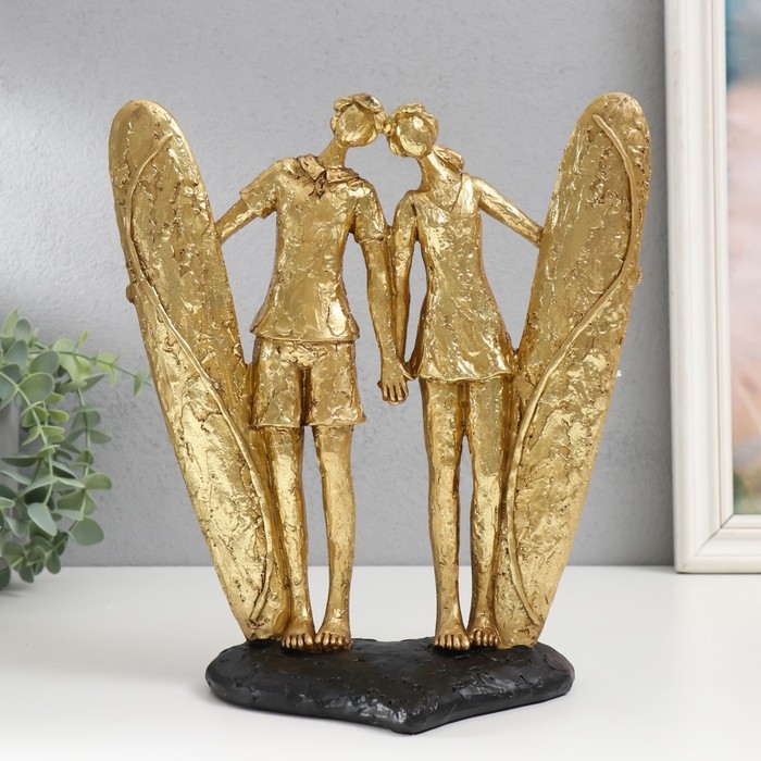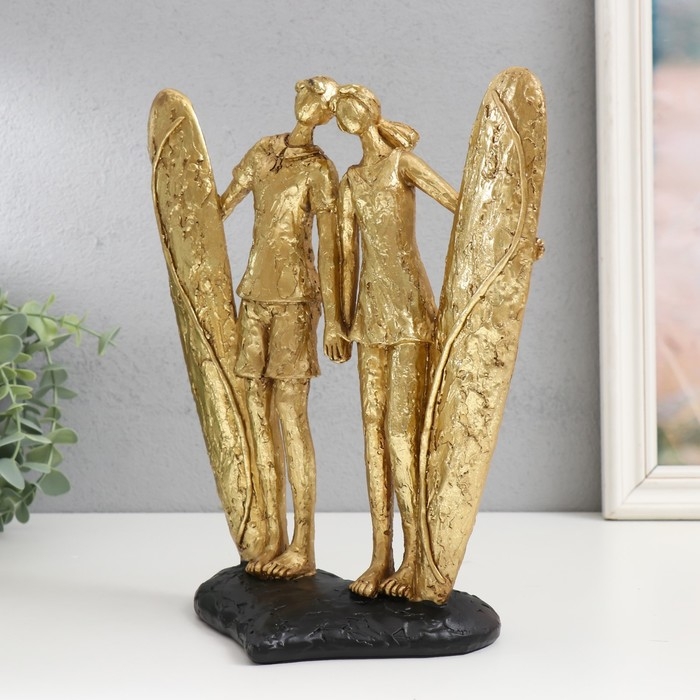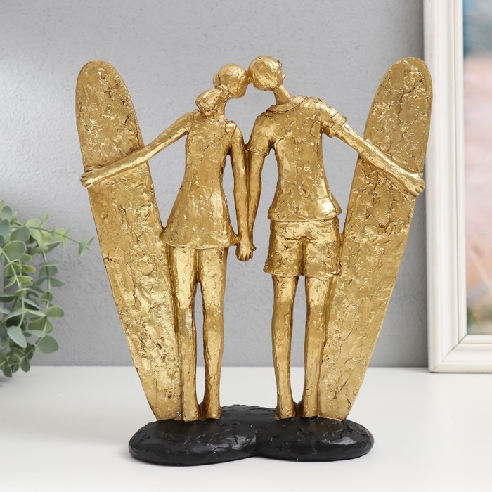 Сувенир полистоун "Влюблённые сёрфингисты" золото 26х23,5х12,5 см