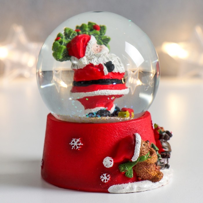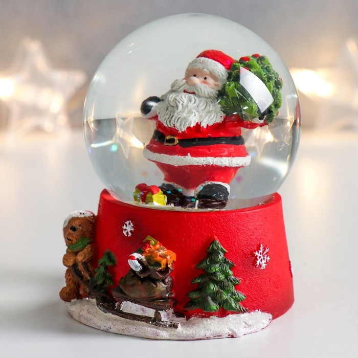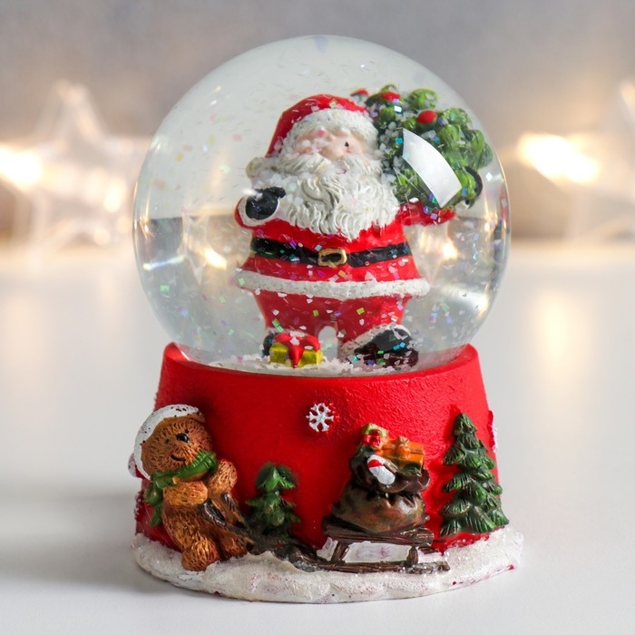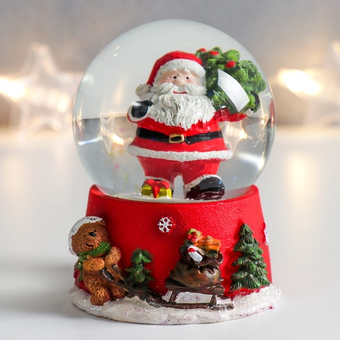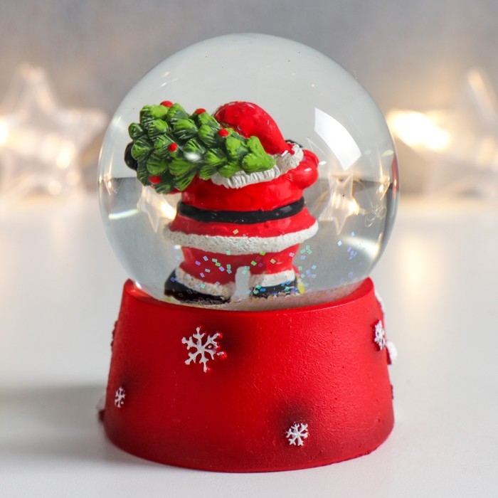 Сувенир полистоун водяной шар "Дед Мороз с ёлкой на плече" 6,5х6,5х8,5 см