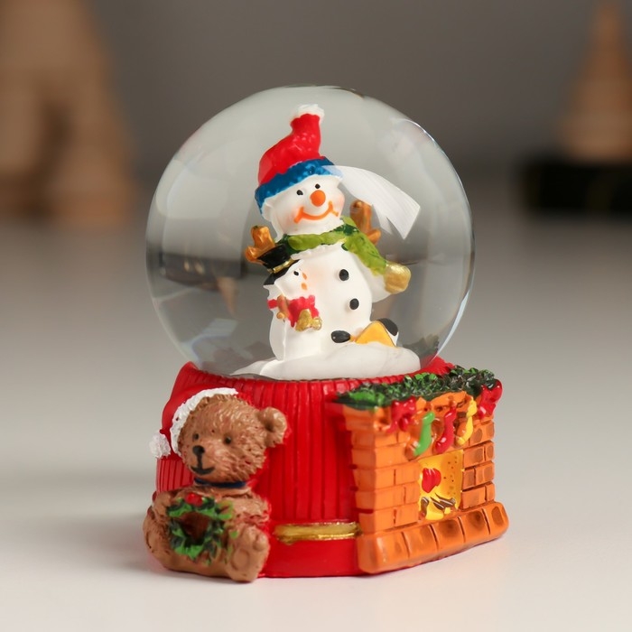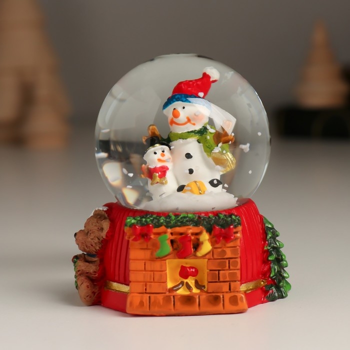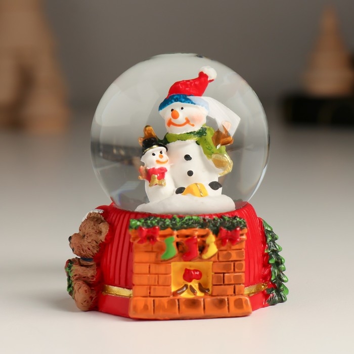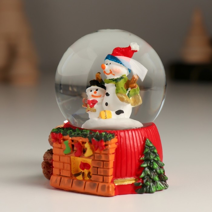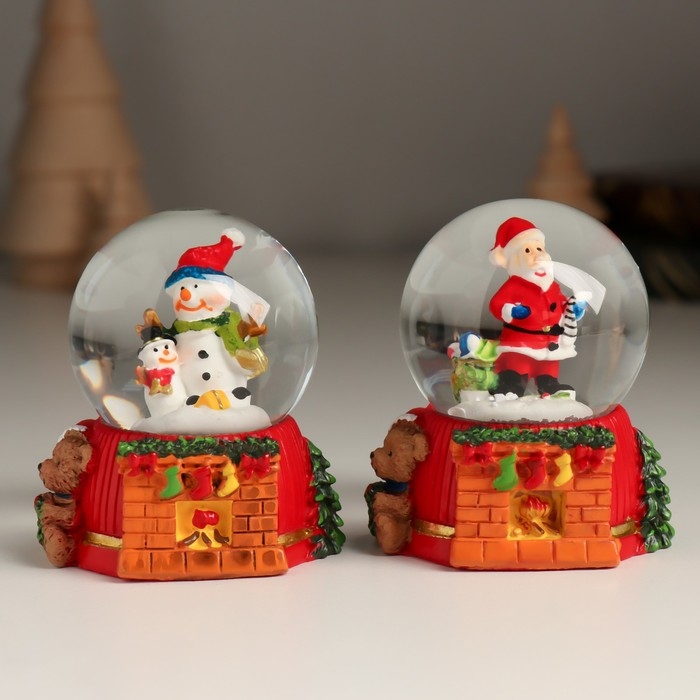 Сувенир полистоун водяной шар "Дед Мороз/Снеговик у камина" МИКС 5,5х5х6,5 см