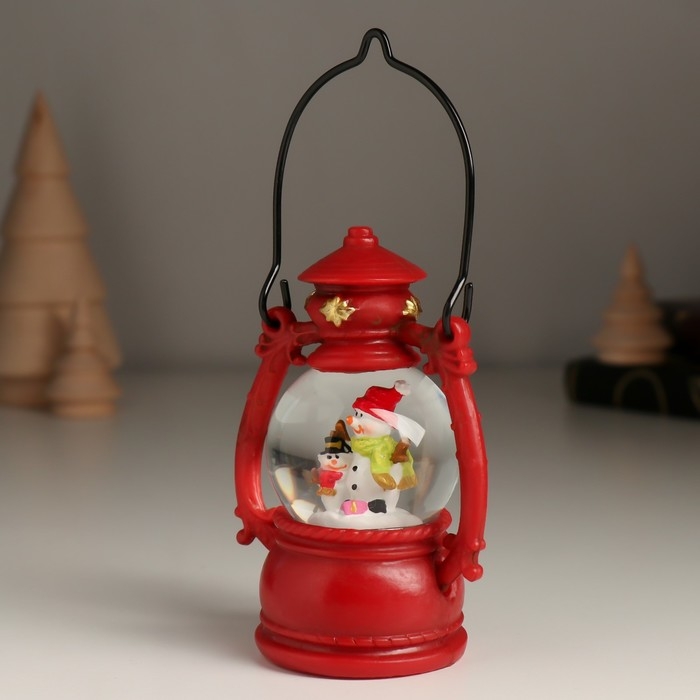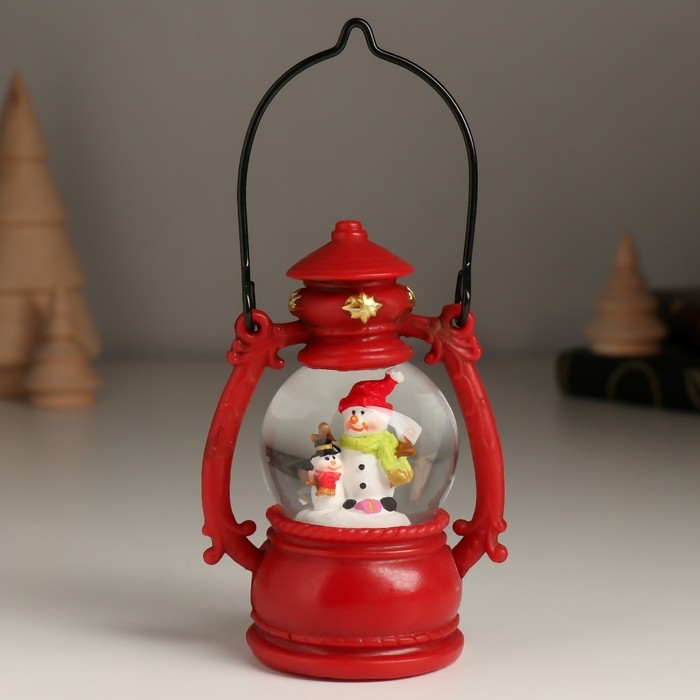 Сувенир полистоун водяной шар "Дед Мороз/Снеговик в фонарике" МИКС 7х5х10 см