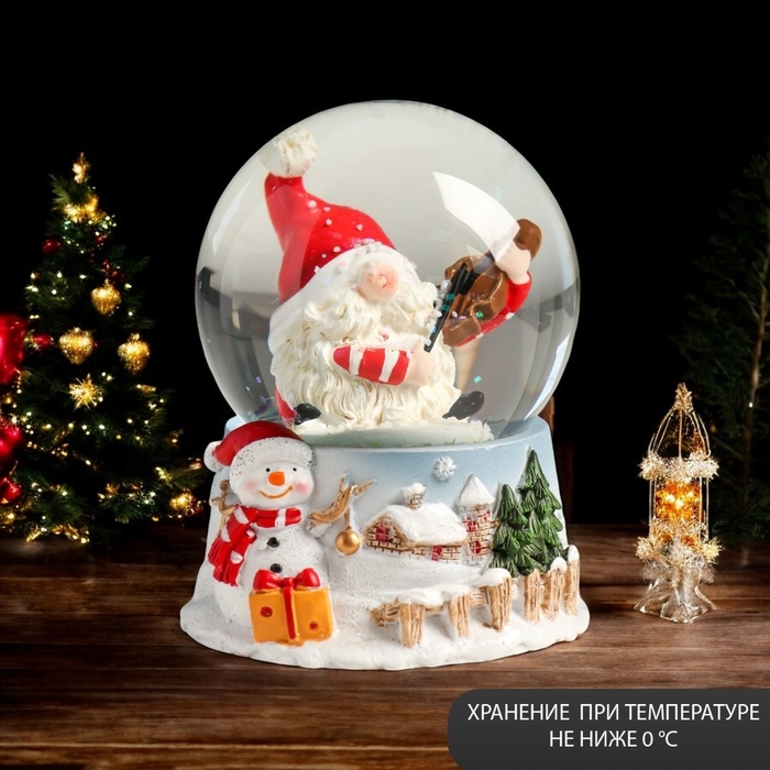 Сувенир полистоун водяной шар "Дед Мороз со скрипкой" 7х8х9 см