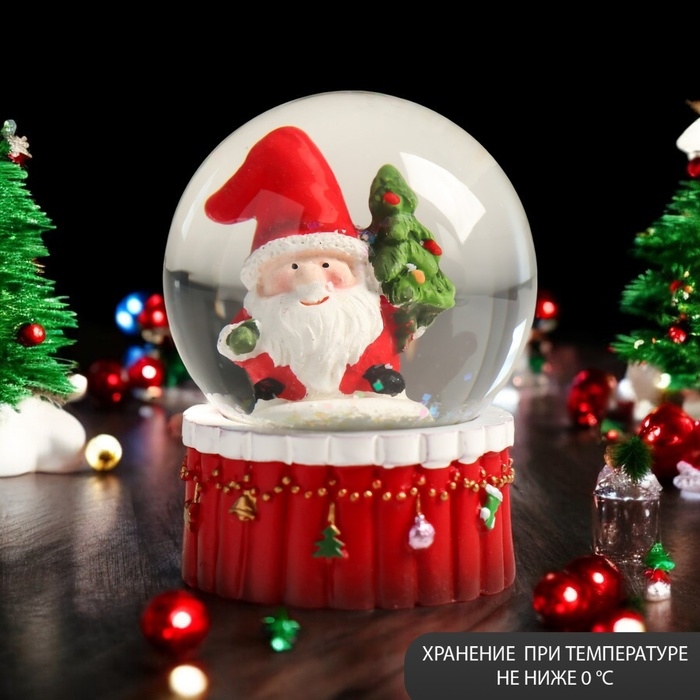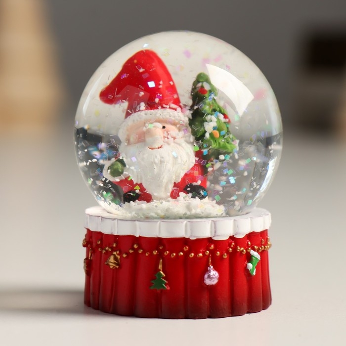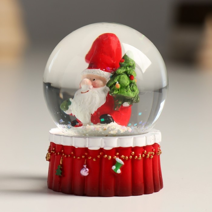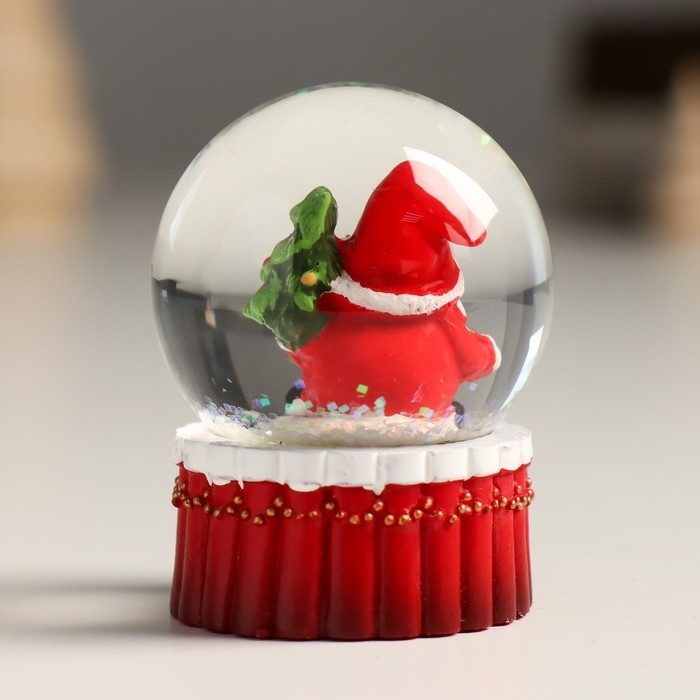 Сувенир полистоун водяной шар "Дедушка Мороз с ёлочкой" 4,5х4,5х6,5 см