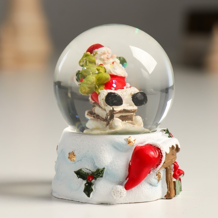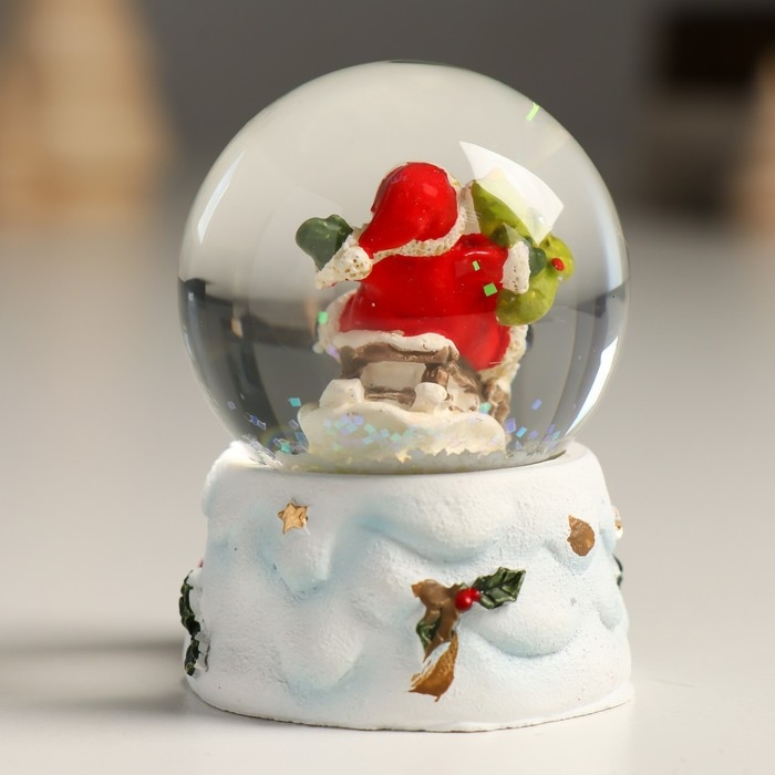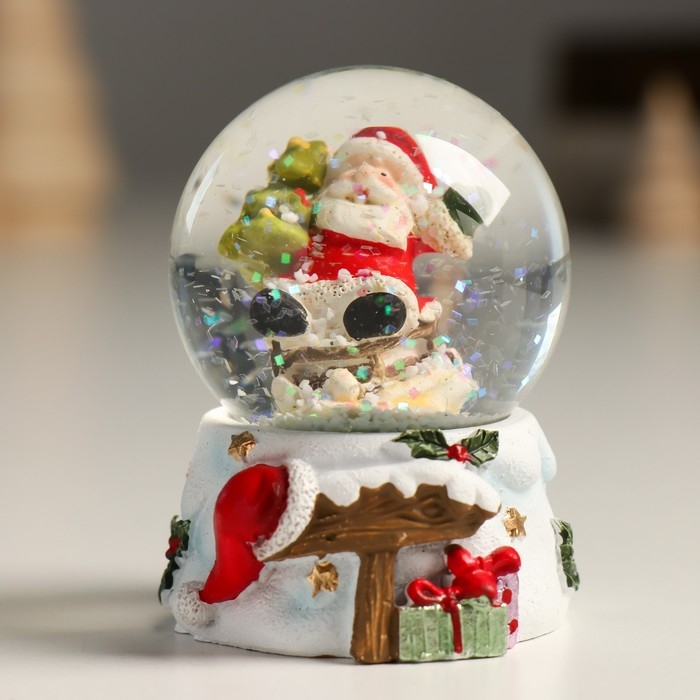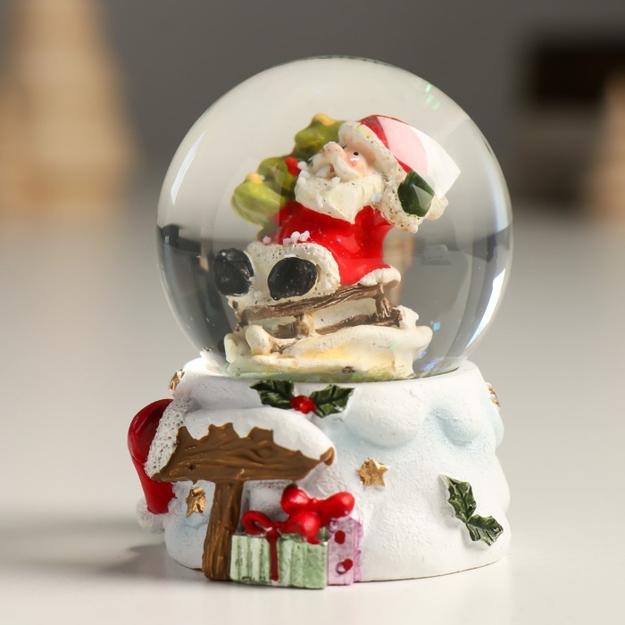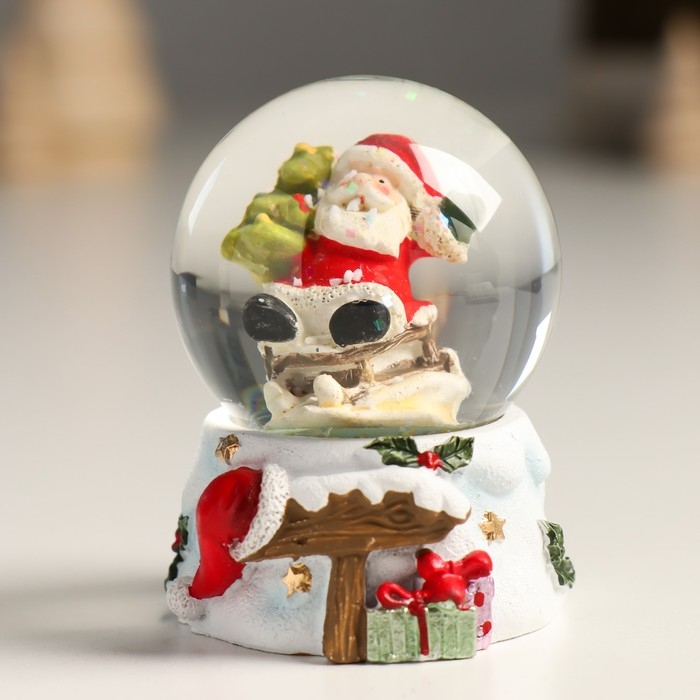 Сувенир полистоун водяной шар "Дедушка Мороз с ёлочкой с горы" 4,5х4,5х6,5 см