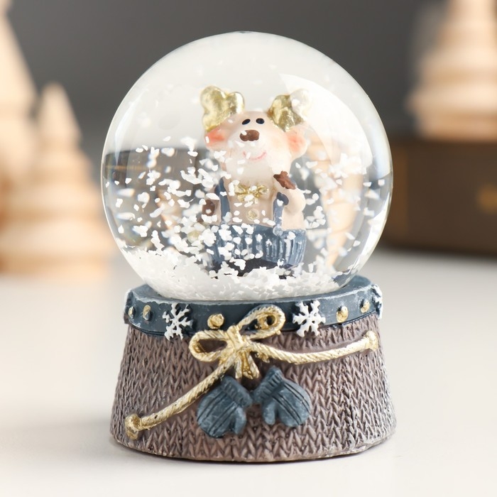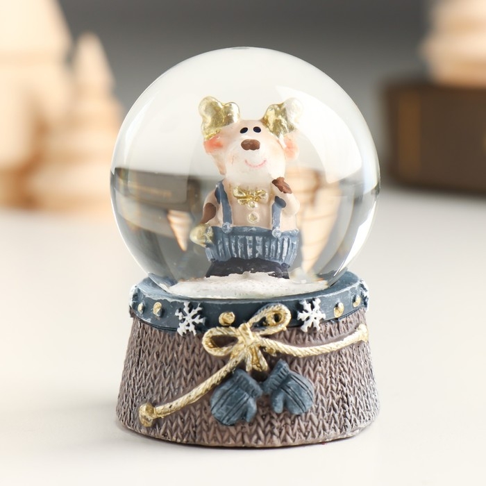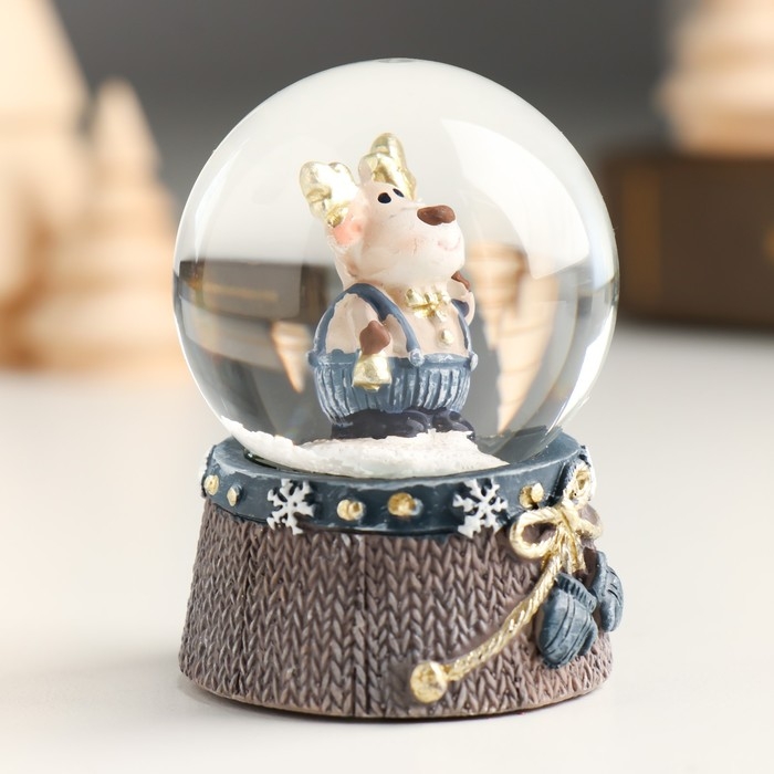 Сувенир полистоун водяной шар "Лосик с золотыми рожками в сине-сером" МИКС 4,5х4,5х6,2 см