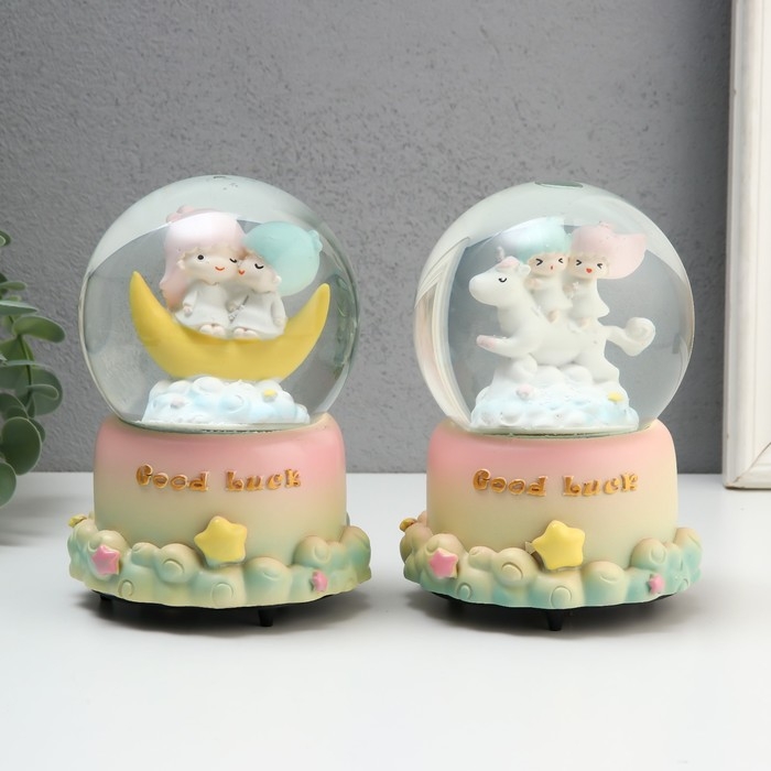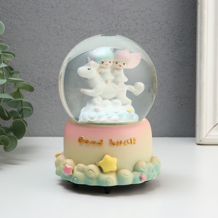 Сувенир полистоун водяной шар музыка и крутится "Малыши в облаках" МИКС 10,5х10,5х15,5 см