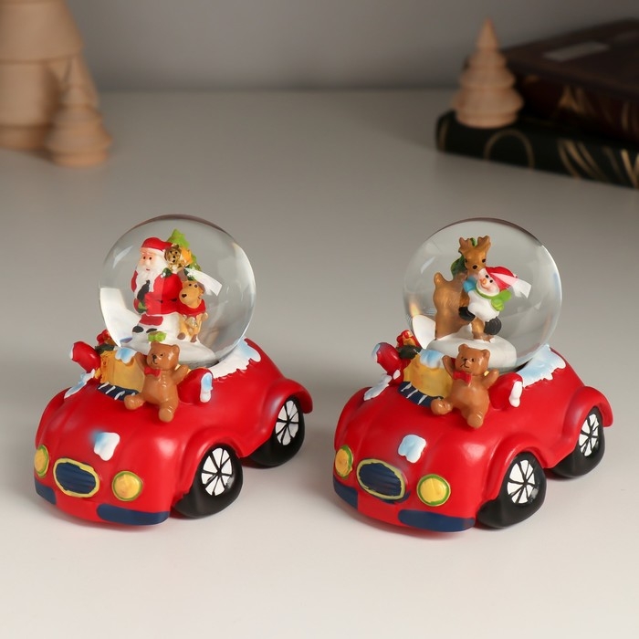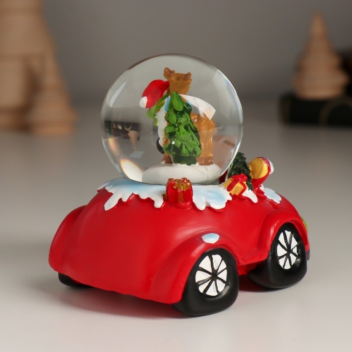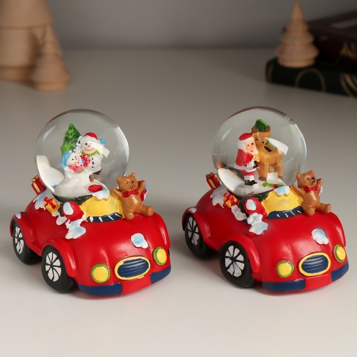 Сувенир полистоун водяной шар "Новогодний автомобиль" МИКС 8,3х6,6х7,8 см