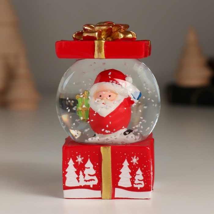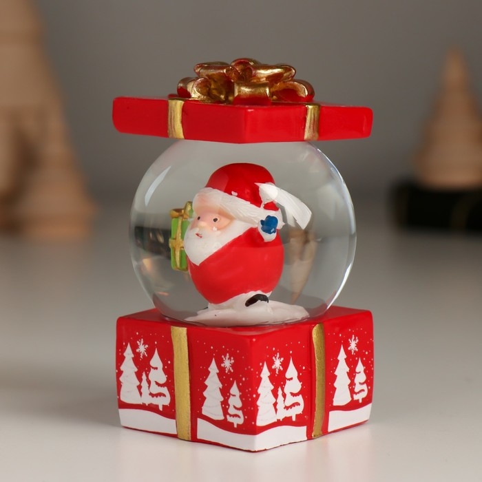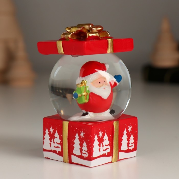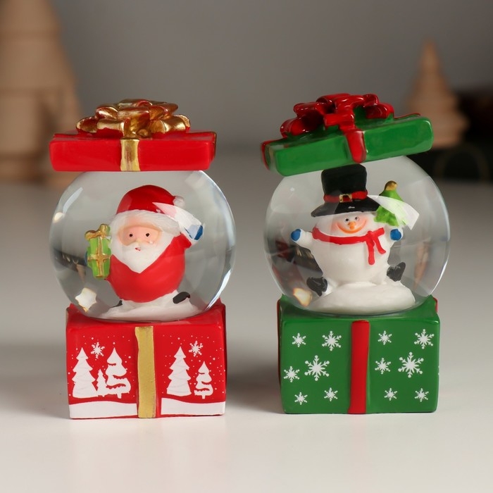 Сувенир полистоун водяной шар "Новогодний персонаж в подарке" МИКС 4,5х4,5х7,3 см