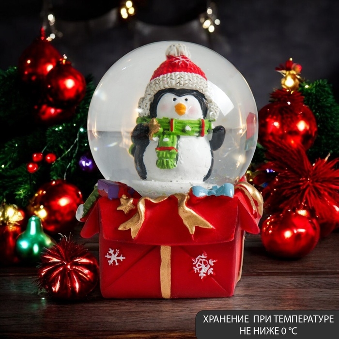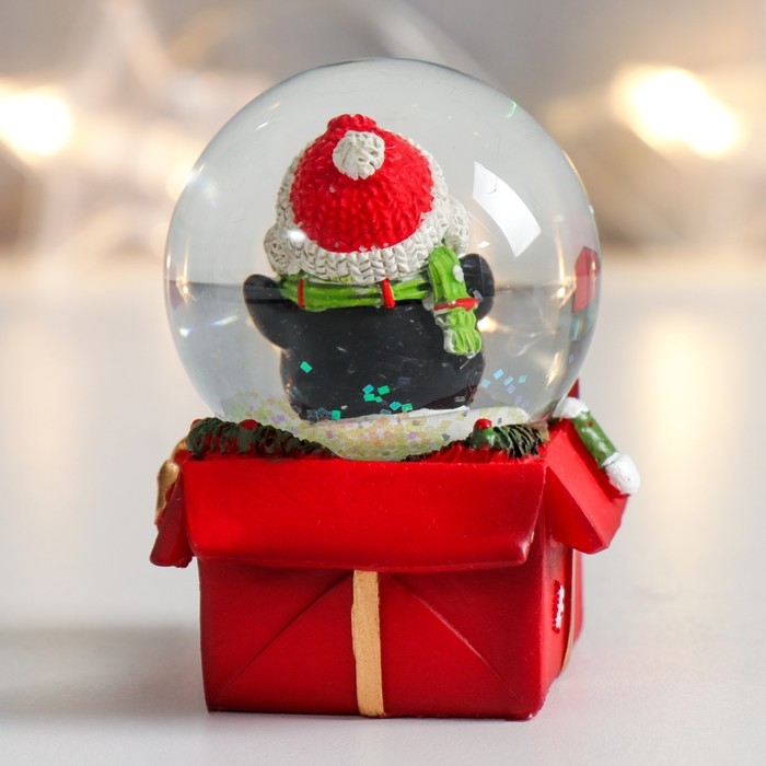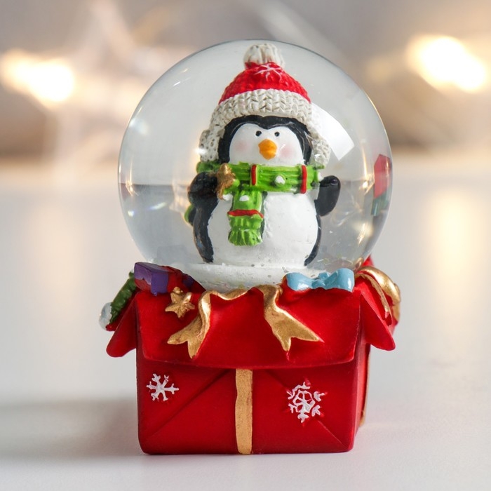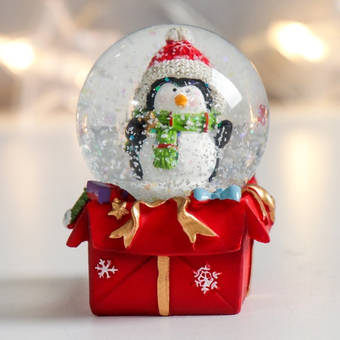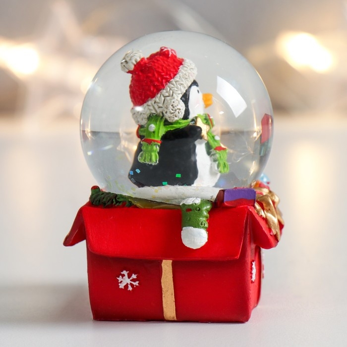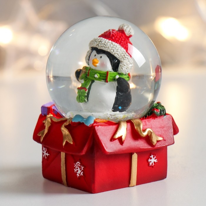 Сувенир полистоун водяной шар "Пингвинчик на подарке" 4,5х4,5х6,5 см