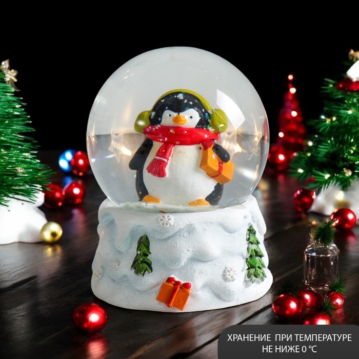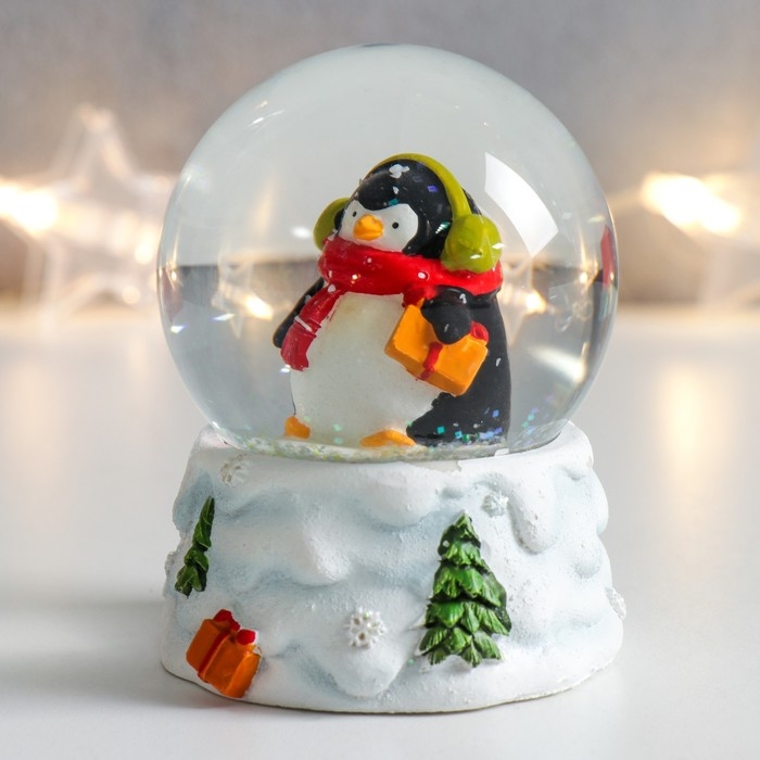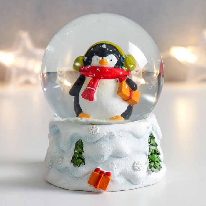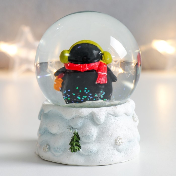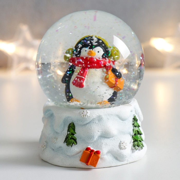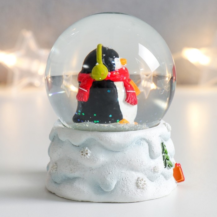Сувенир полистоун водяной шар "Пингвинчик в шарфике и наушниках" 7х6,7х8,8 см