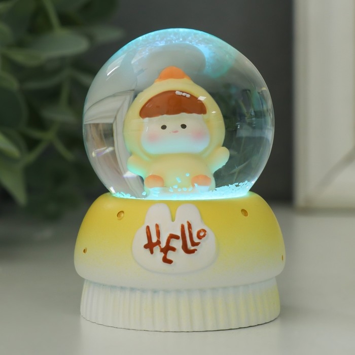 Сувенир полистоун водяной шар свет "Малыш-пухляш в костюме животного" МИКС 7х5х5 см