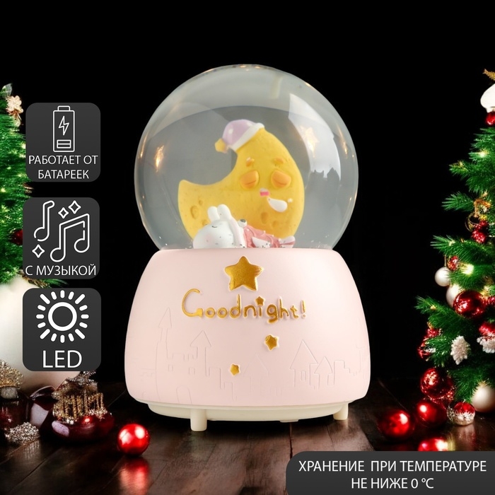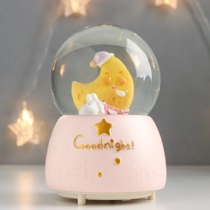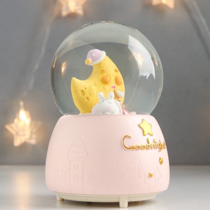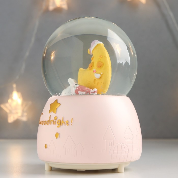 Сувенир полистоун водяной шар свет, музыка "Пёсик спит у месяца" 13х8х8 см