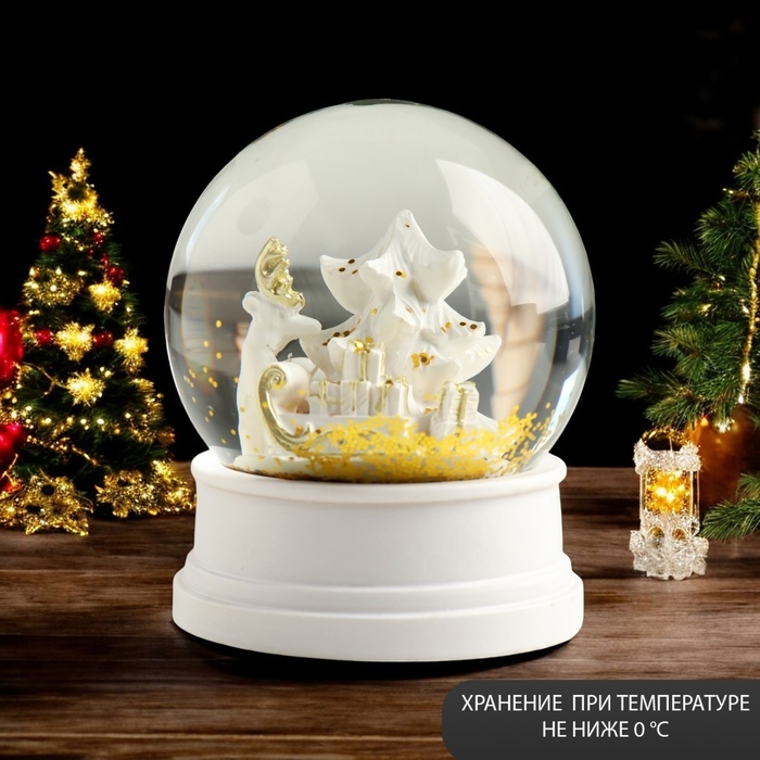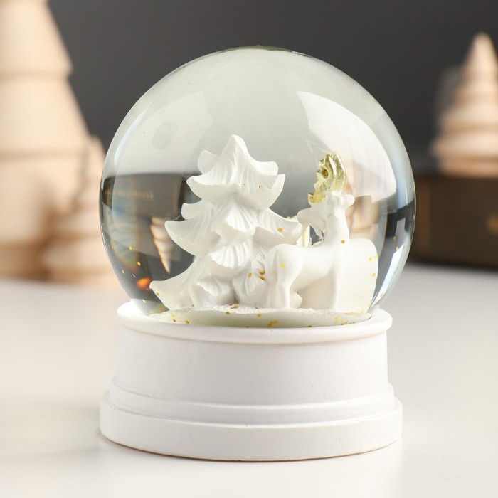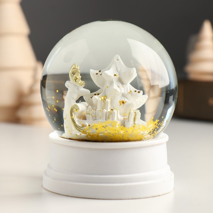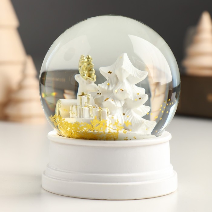 Сувенир полистоун водяной шар "Заснеженная ёлочка с подарками" белый 6,5х6,5х8 см
