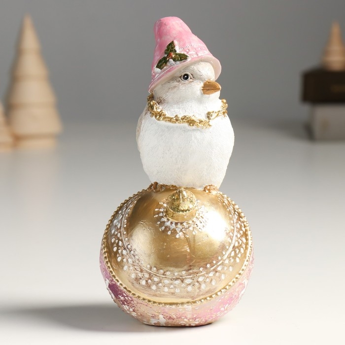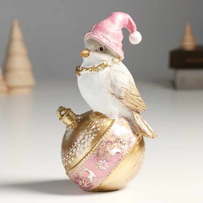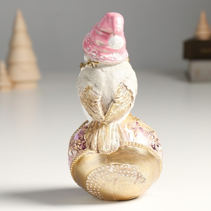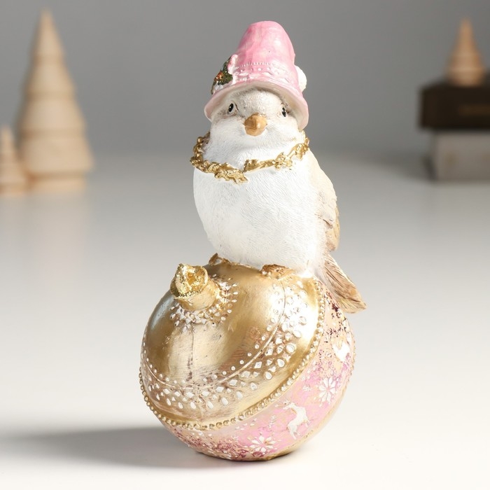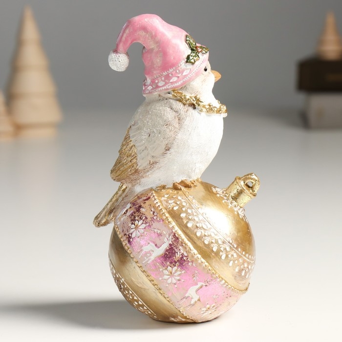 Сувенир полистоун "Воробышек в розовом колпаке на новогоднем шарике" 11,5х8,5х17,5 см