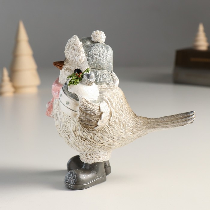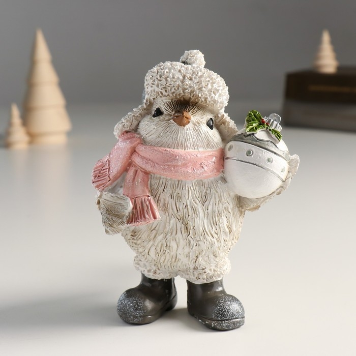 Сувенир полистоун "Воробышек в шапке-ушанке с новогодним шариком" 8,5х13х13 см