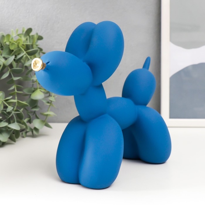 Сувенир полистоун "Воздушный шарик - собачка с золотым носиком" синий 7,5х20,5х17,5 см