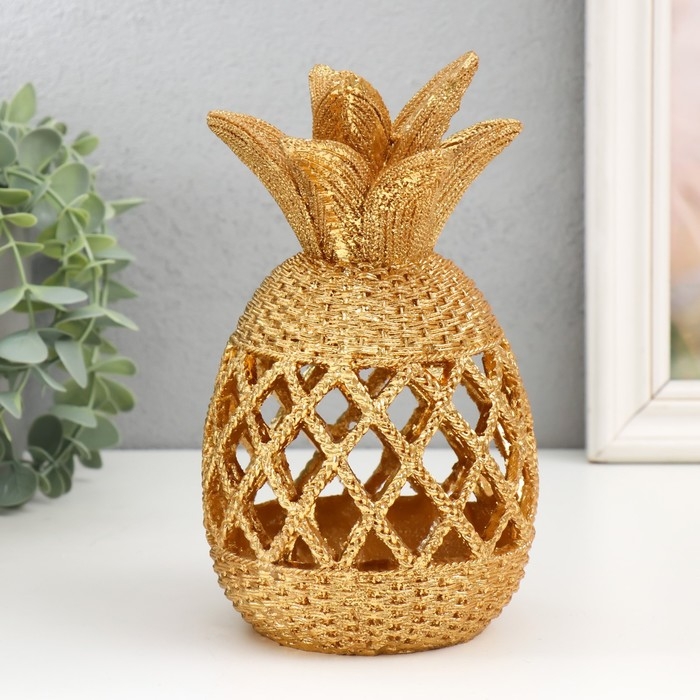 Сувенир полистоун "Вязаный ананас" золото 10,5х10,5х18 см