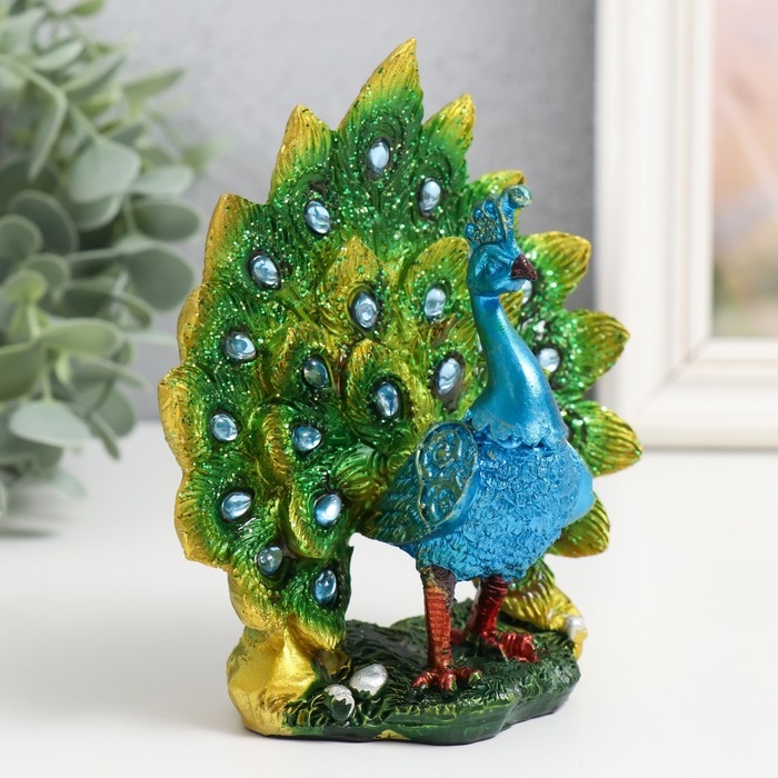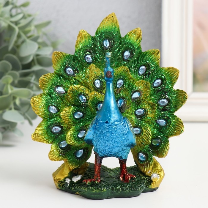 Сувенир полистоун "Зелёный павлин с пышным хвостом" 11,5х6х12 см