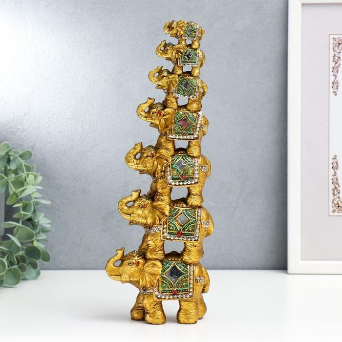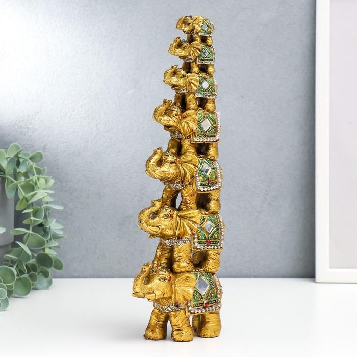 Сувенир полистоун зеркальные вставки "Пирамида из 7 слонов" 30х10,5х5,5 см