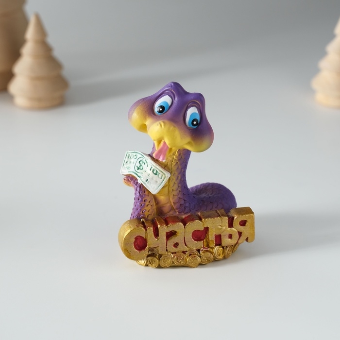 Сувенир полистоун "Змейка с пожеланием и деньгами" МИКС 5х4х7 см
