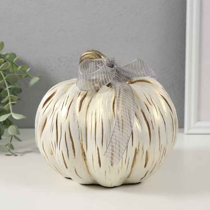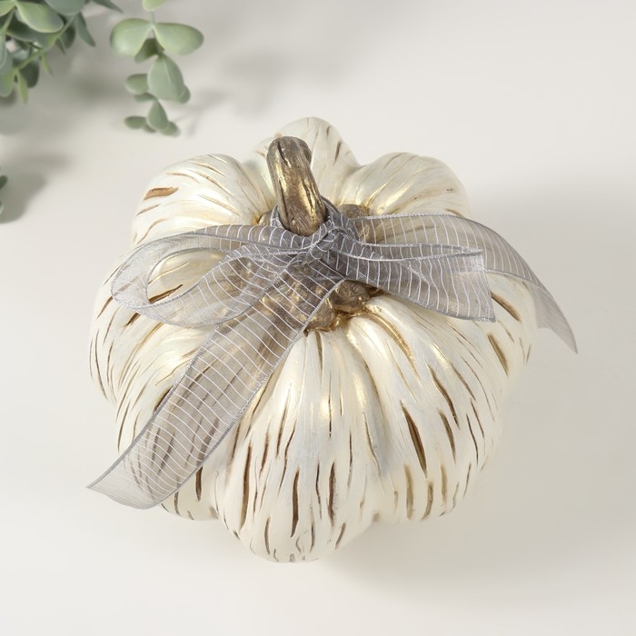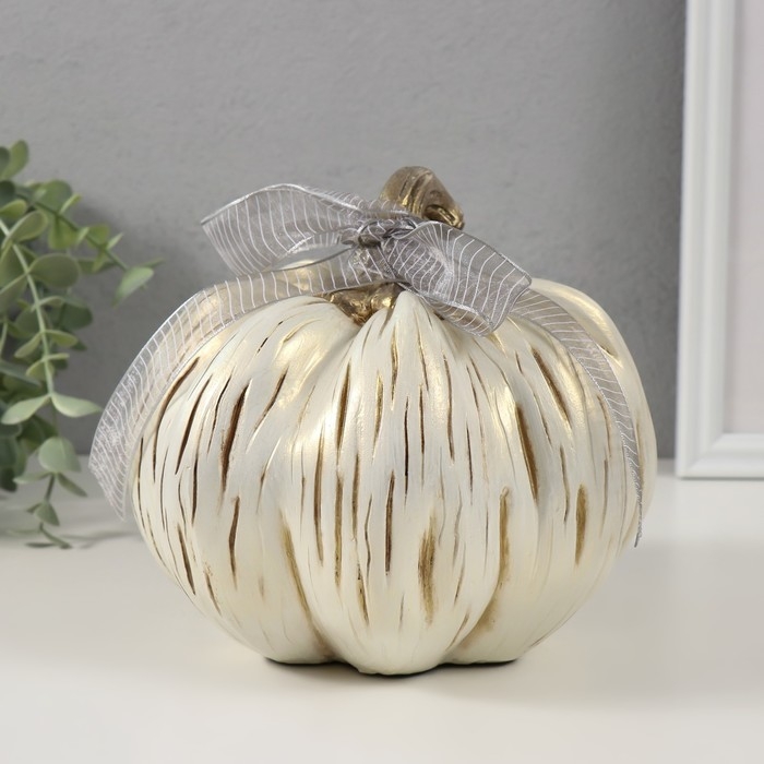Сувенир полистоун "Золотистая тыква с бантом" 18х17х15,5 см