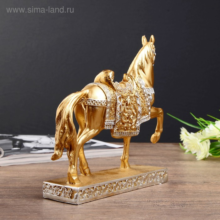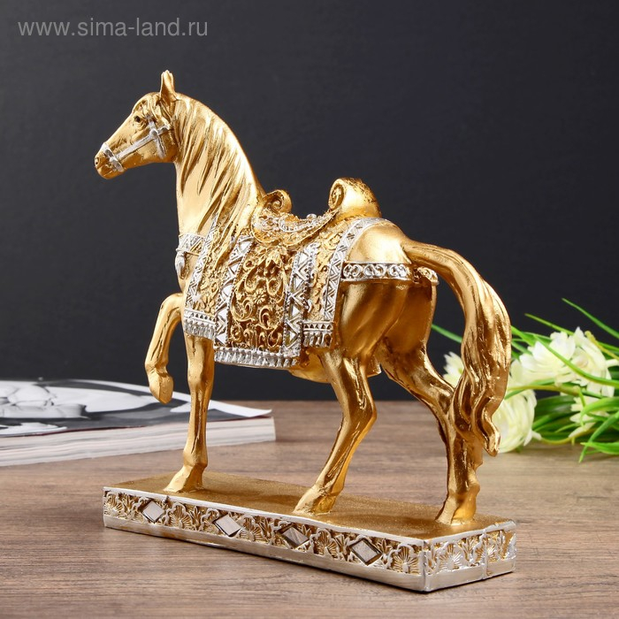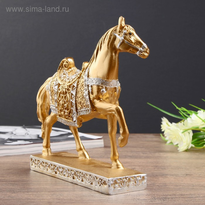 Сувенир полистоун "Золотой конь - аллюр" 17,5х19,5х5,4 см