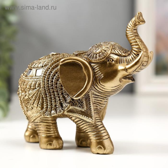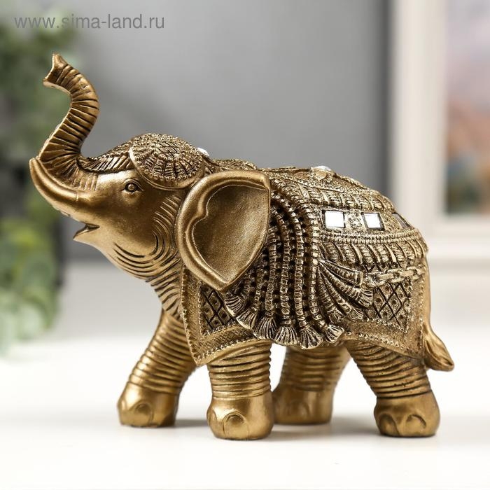 Сувенир полистоун "Золотой слон в попоне с кисточками и зеркалами" 13х14,5х7 см