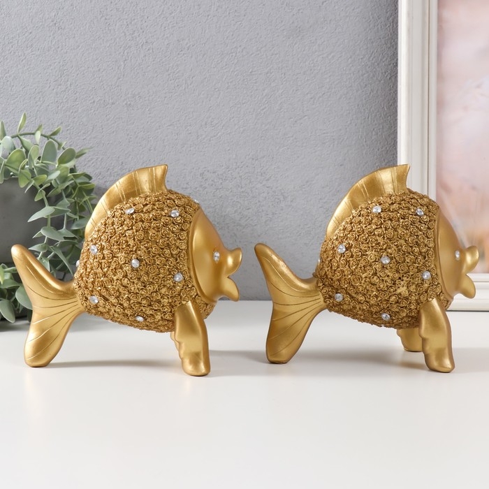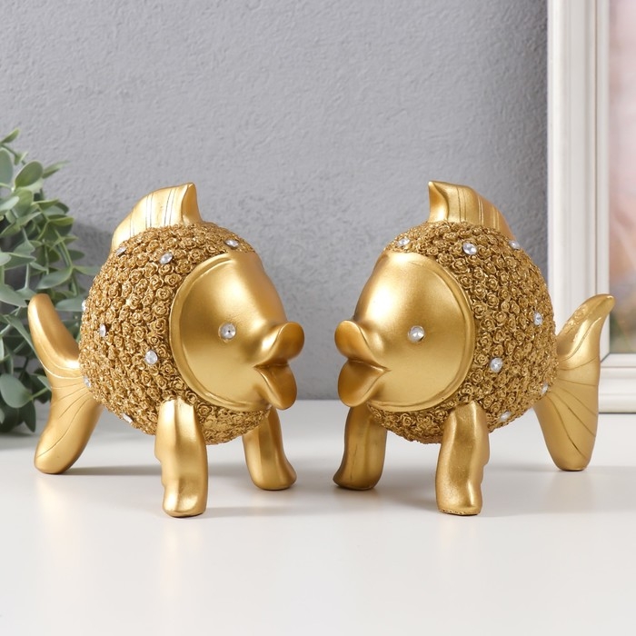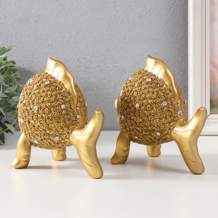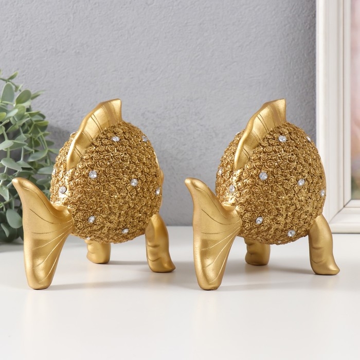 Сувенир полистоун "Золотые рыбки со стразами" набор 2 шт 15х9х15 см
