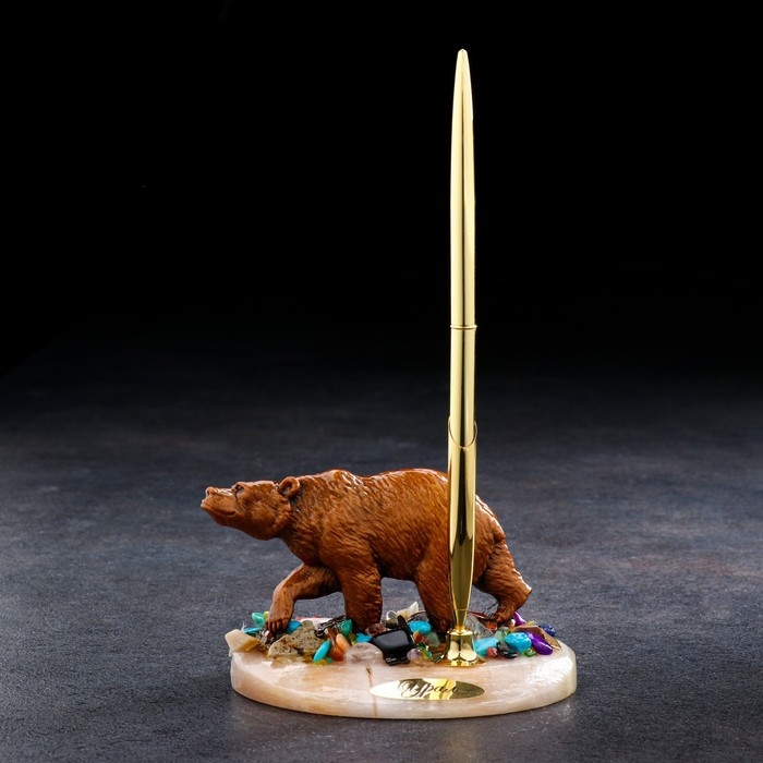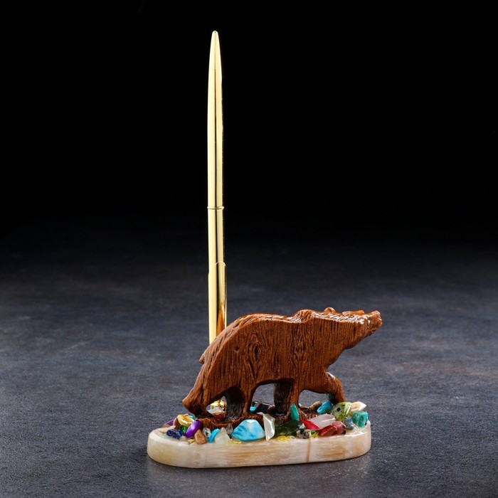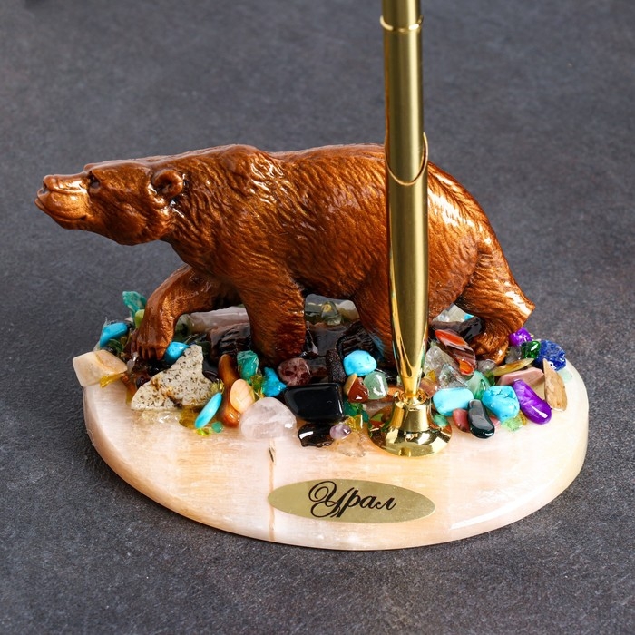 Сувенир с ручкой "Медведь", селенит, минералы 12х7 см